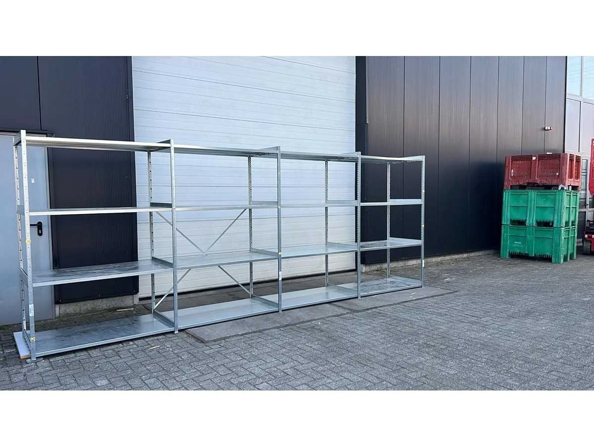 5x staander 2000x700mm; 16 legborden bestaande uit 2 delen 1280x300 en 1280x400mm; 7461*5/7462*16/7463*16 Nee Merk: GS3 Sectie afm. b: 700mm Sectie diepte: 1280mm Sectie afm. h: 2000mm Aantal staanders: 5 Aantal legborden: 16 Demontabel: true
