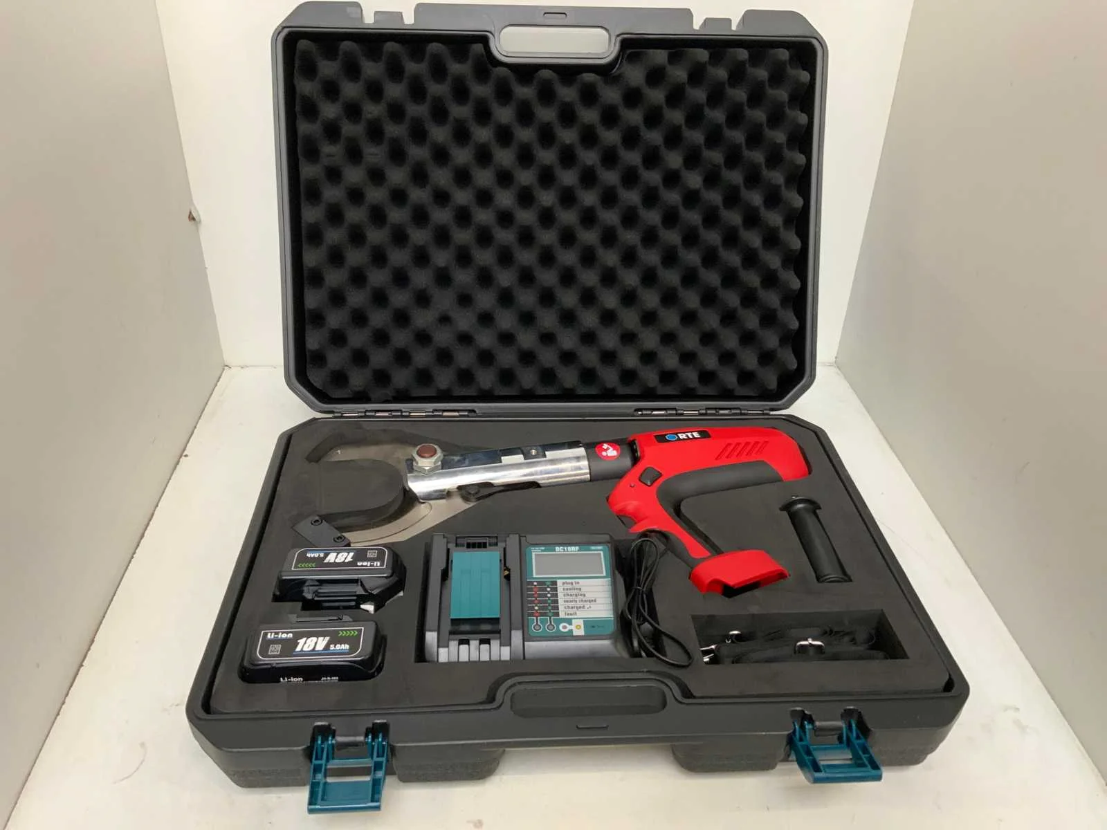 120Kn; 40mm; cutting cycle 70times; armoured cu/al cable 70mm; accu met Indicator; acculader;6092 Nee Merk: RTE Type: EB-85C Bouwjaar: 2024 Accu lader: true Met koffer: true Accuspanning: 18V Aantal accu's: 2