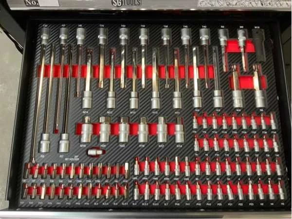 V.v. gereedschap 274-delig; 4 wielen waarvan 2 met rem; stuurgroep; werkblad; 7lades; 1 afsluitbare kast met legbord; 2 sleutel sets; ongebruikt in doos; 2419; Nee Merk: SG Tools Aantal laden: 7 Met inhoud: true Totale afmeting L: 1130mm Totale afmeting Breedte: 460mm Totale afmeting Hoogte: 990mm