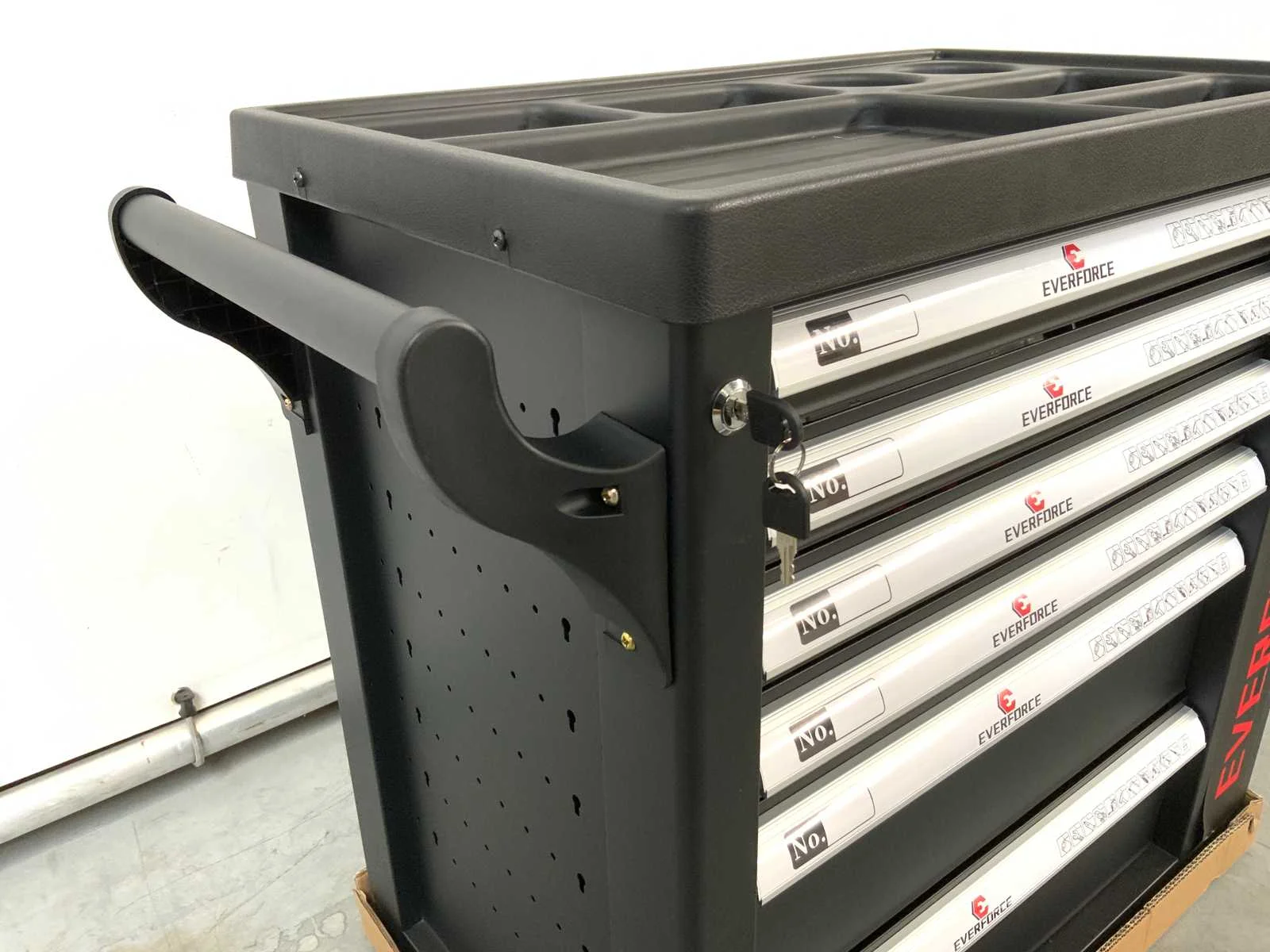 4 laden gevuld; verrijdbaar; afsluitbaar; lade 1 Doppenset 1/2” en 1/4” 4 tot en met 32 en toebehoren; Lade 2 steek ringsleutelset 8 tot en met 22 torx imbusset bitjes; lade 3 schroevendraaiers en imbusset; lade 4 tangen, hamer, pendrijvers; lade 4 & 5 zijn leeg voor opslag; 5769 Nee Merk: Everforce Aantal laden: 6 Met inhoud: true Totale afmeting L: 840mm Totale afmeting Breedte: 460mm Totale afmeting Hoogte: 830mm