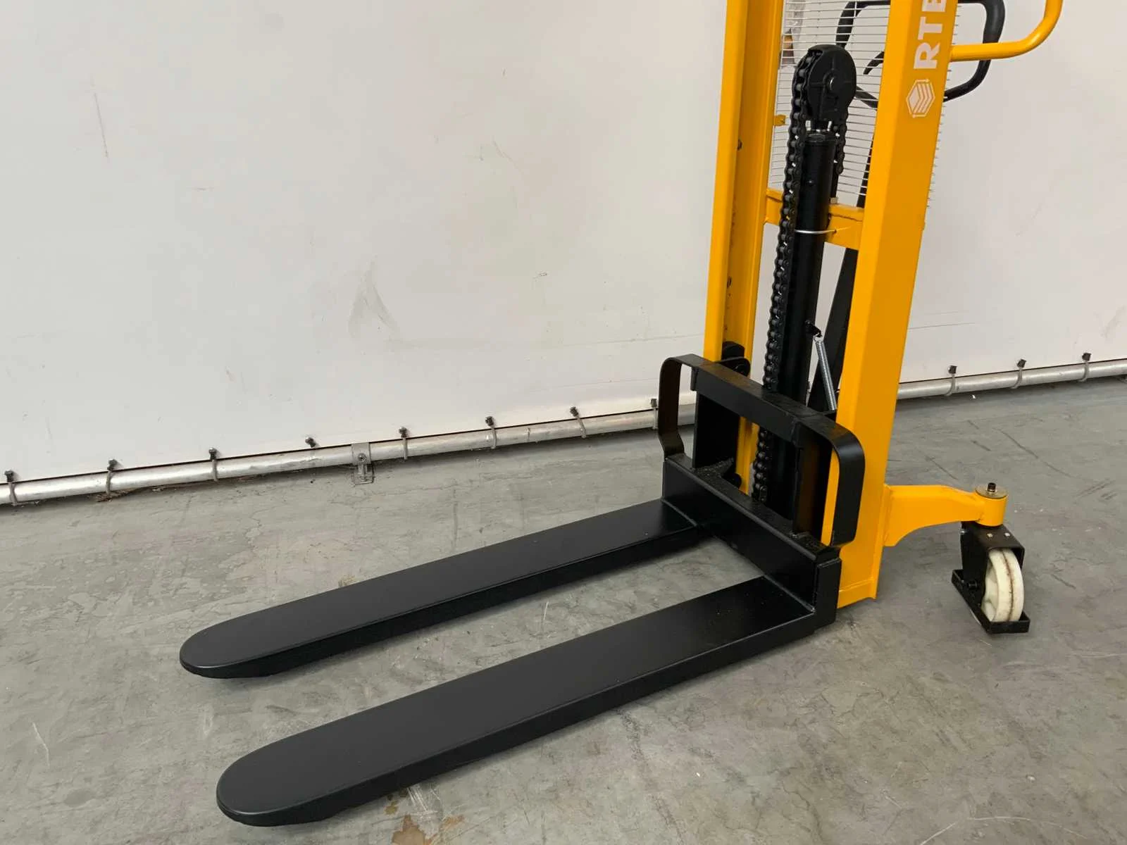Zwenkwielen met rem; 5858 Nee Merk: RTE Hefvermogen: 1000kg Hefhoogte: 1600mm Lepellengte: 1150mm Eigen gewicht: 182kg