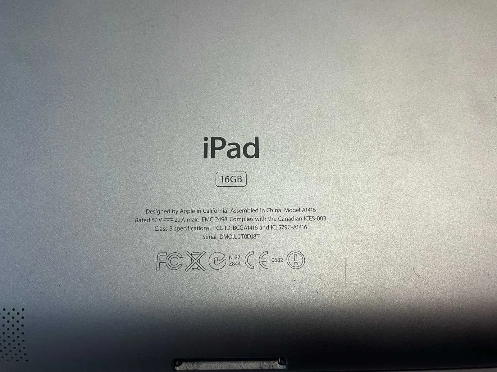 No Merk: Apple Type: IPAD Model: A1416 Opslagcapaciteit: 16GB Zonder oplader: true