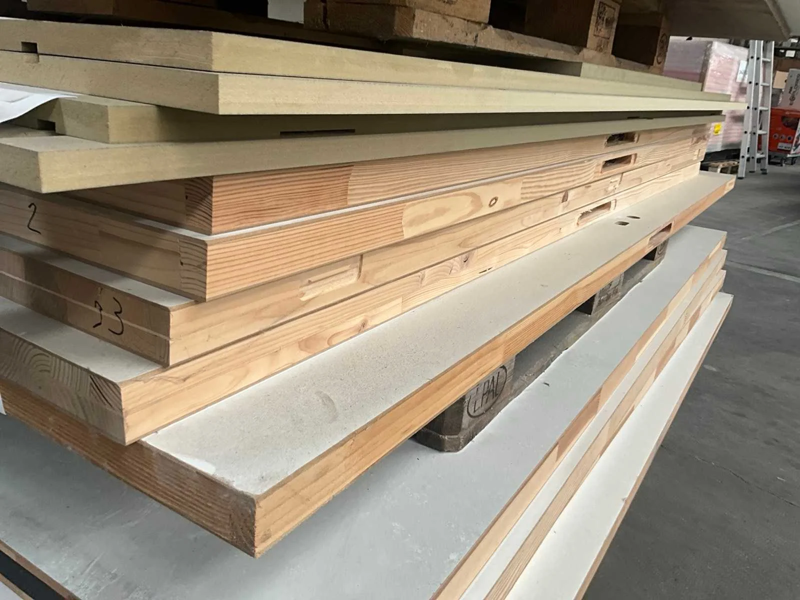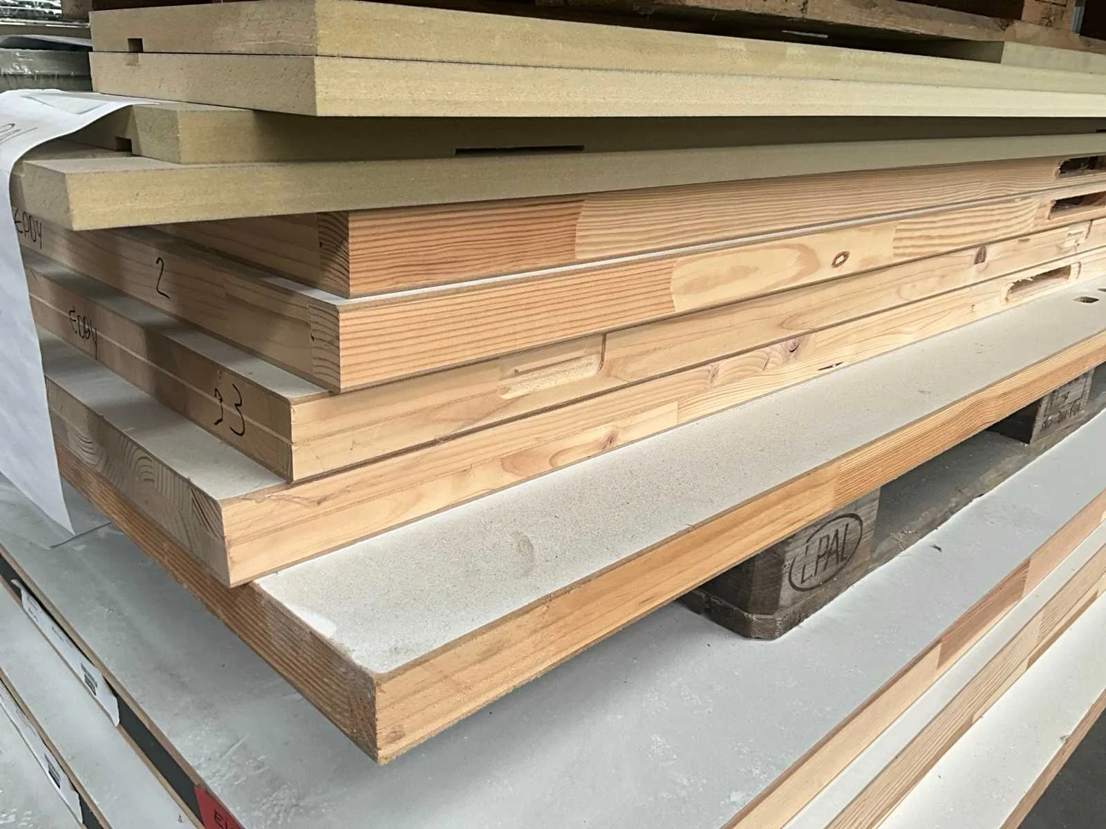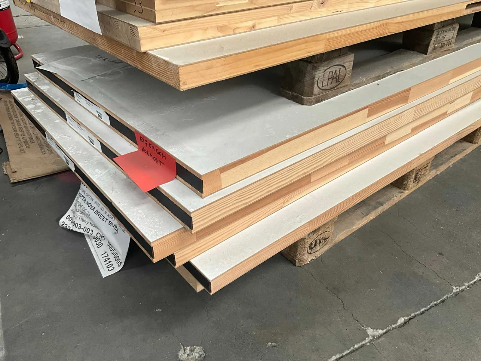 Waaronder verfdeuren PORTA NOVA waarvan 3x 2110x920x50, 1x 2110x830x40 en 1x 2110x980x40 mm, compleet met steldeur RF30 - 2115 x 930 mm, en 4x 2115x930x40 mm VE.PP-PREP. TIMDOOT-MF en deur 2115x930x50 VS50 PLAM, compleet met enige diverse deurlijsten MDF. No