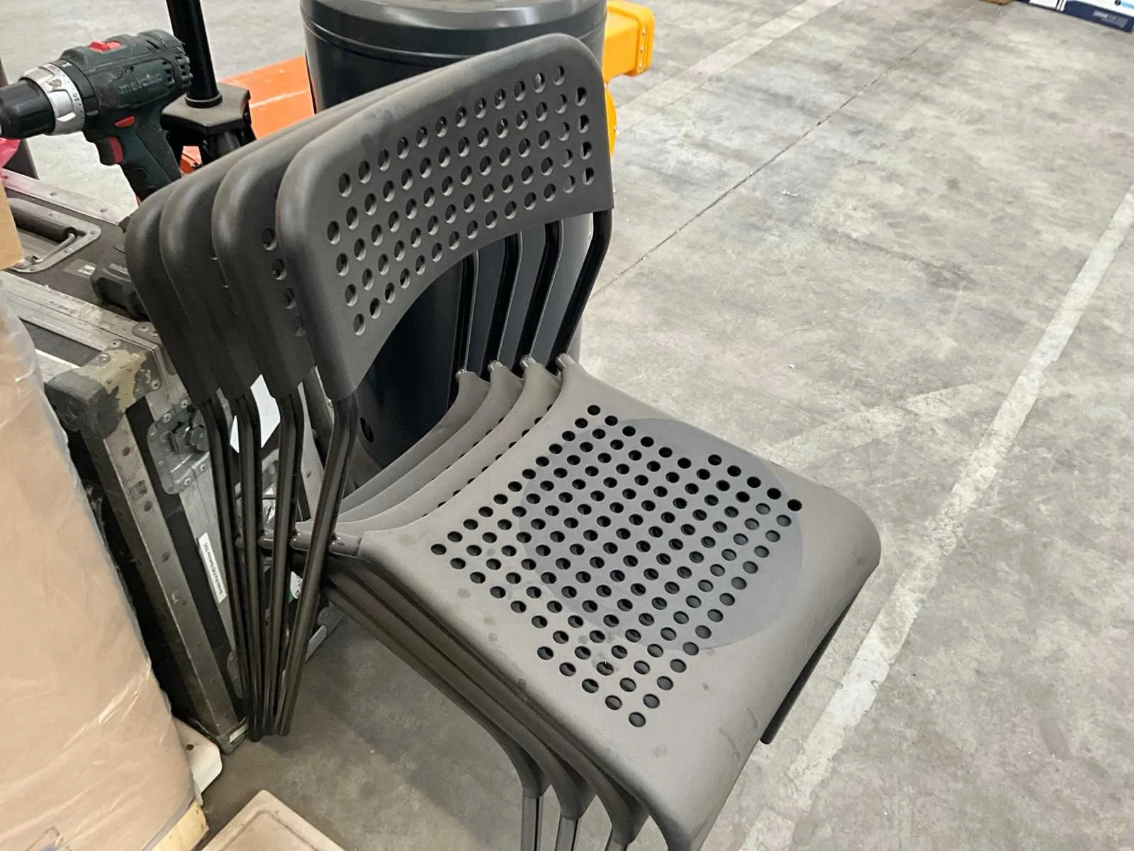 Bijzetstoelen op metalen onderstel voorzien van kunststoffen zit en rug. Stapelbaar. Nee