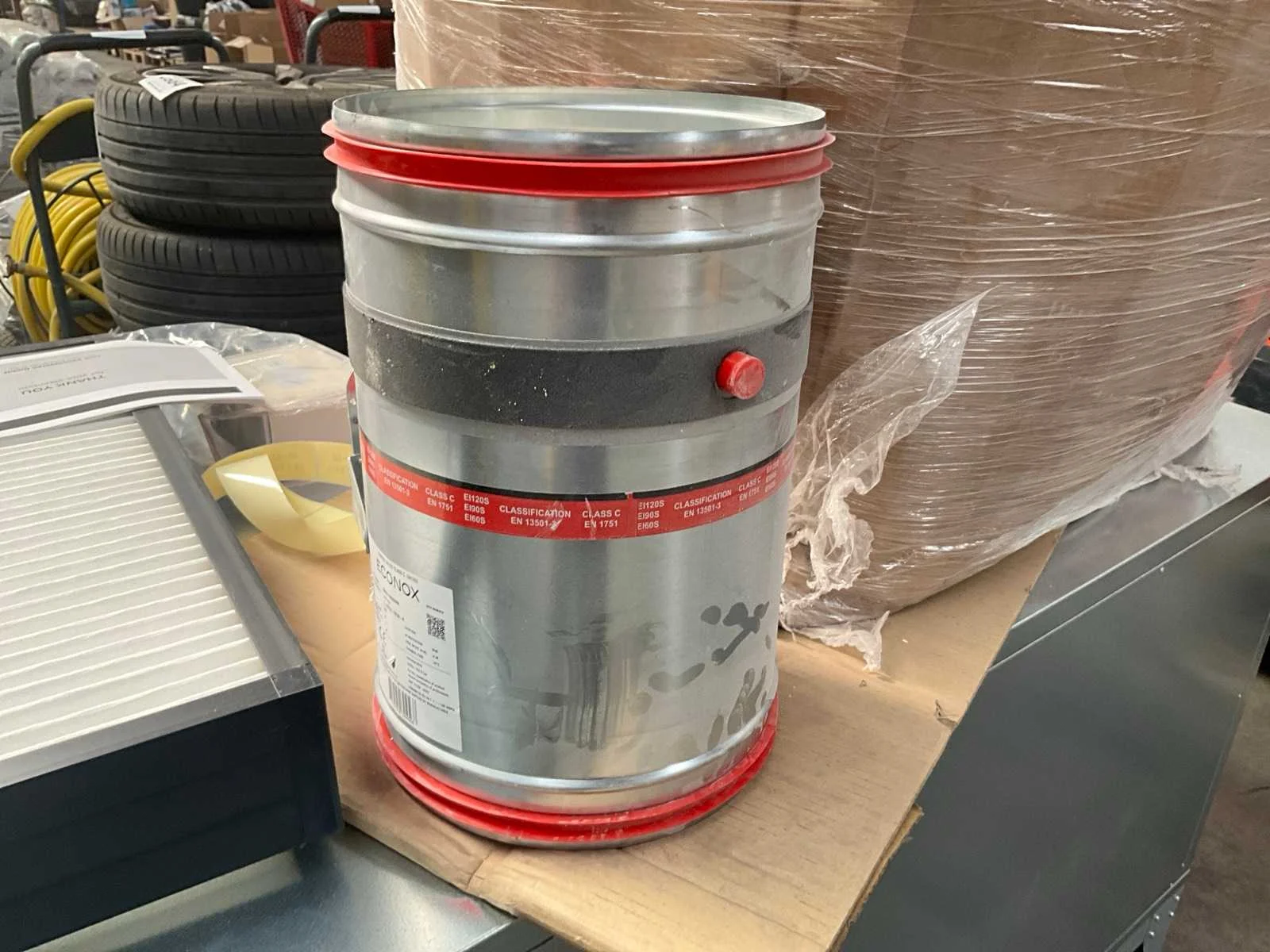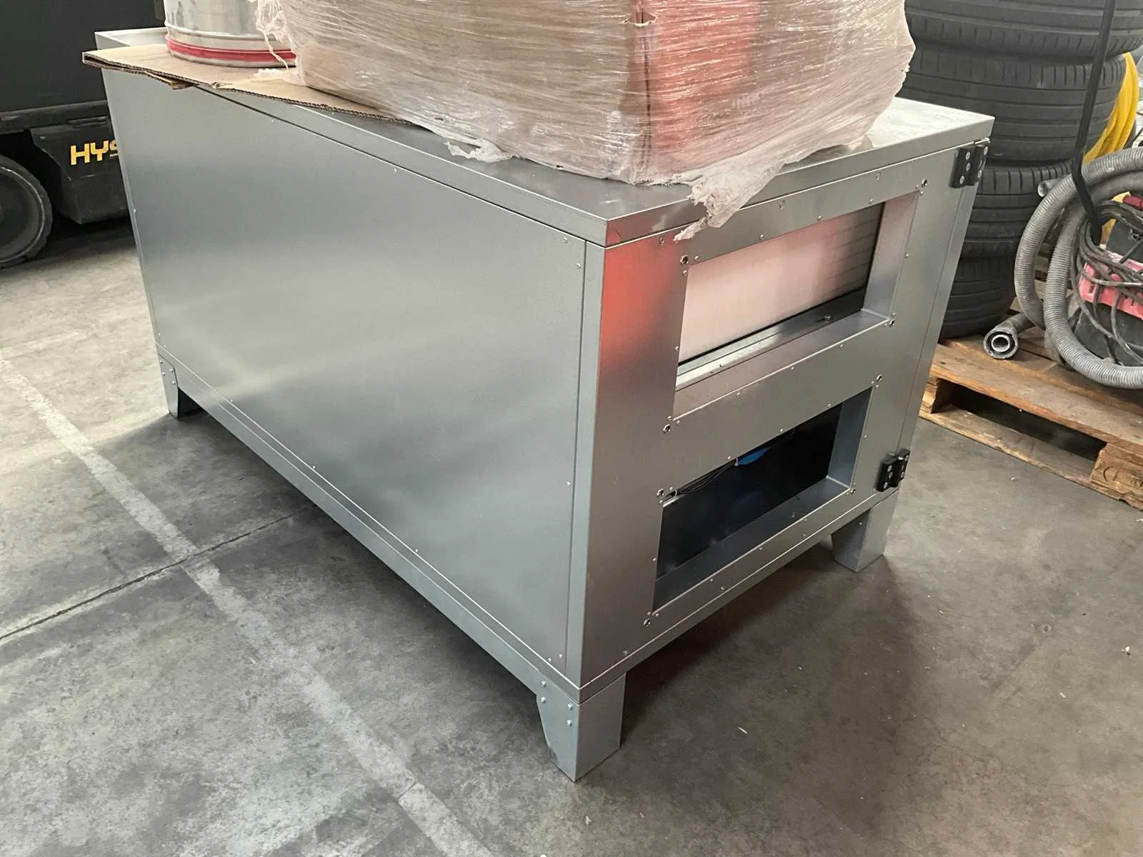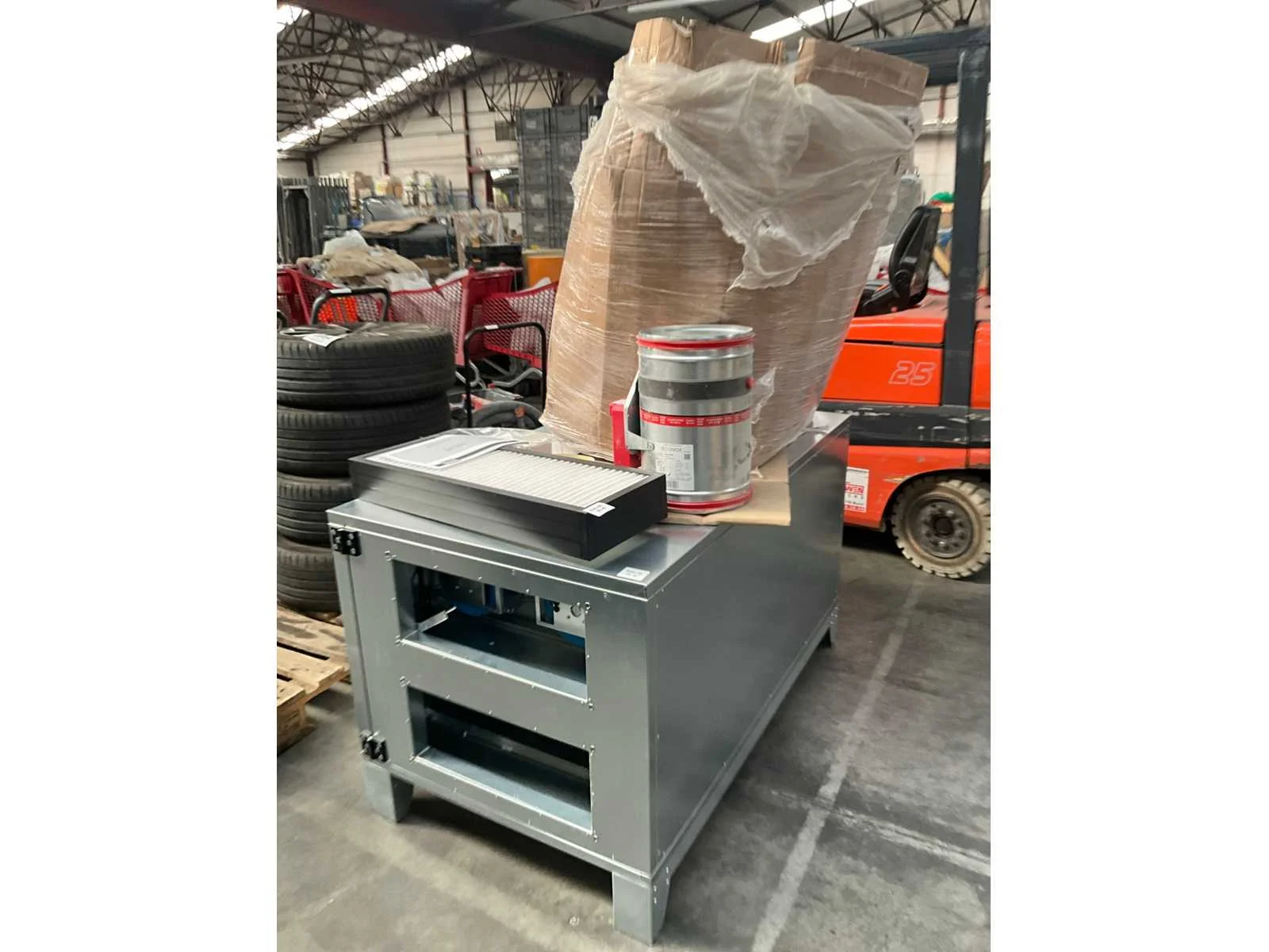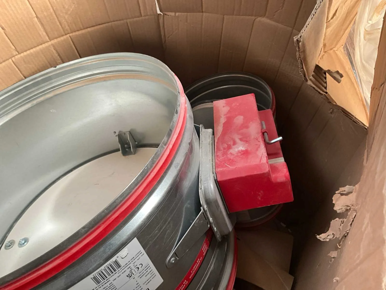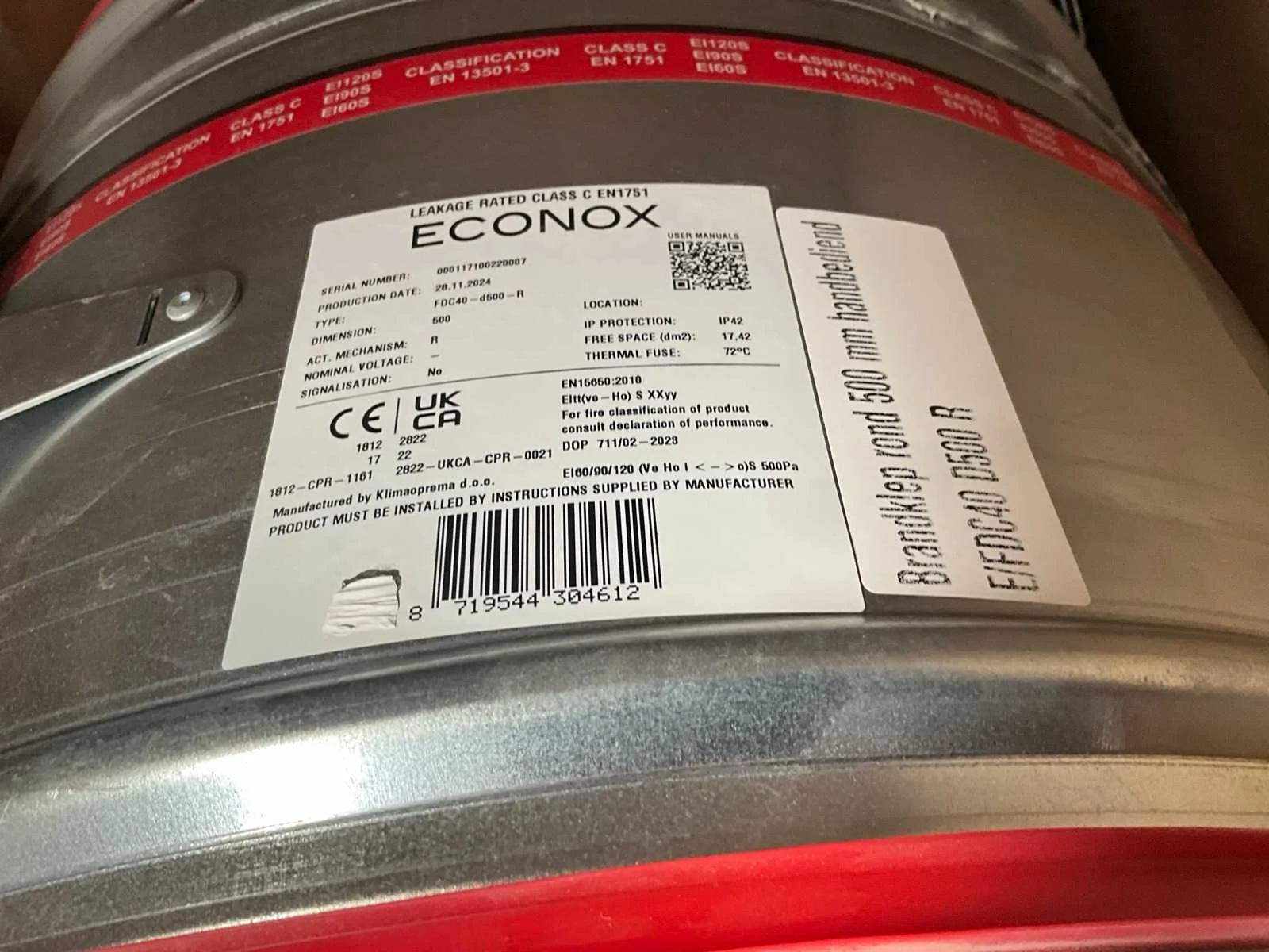 Voorzien van roterende warmtewisselaar met warmtewiel, type ROTO K 1050 H WOJR. Met bedieningselement en compleet met 2x 2 diverse brandkleppen ECONOX rond waaronder met diameter 500 en 250 mm en telkens 38 cm hoog. Nee Merk: Ruck Bouwjaar: 2015