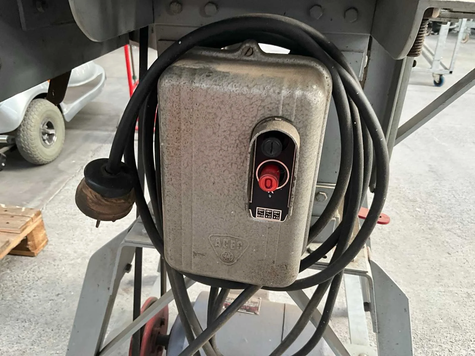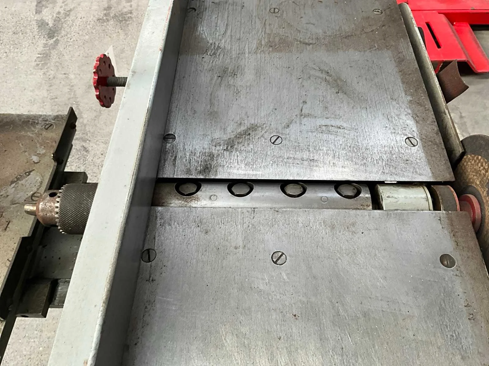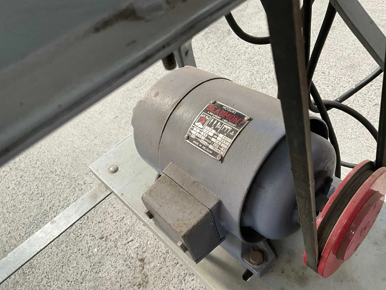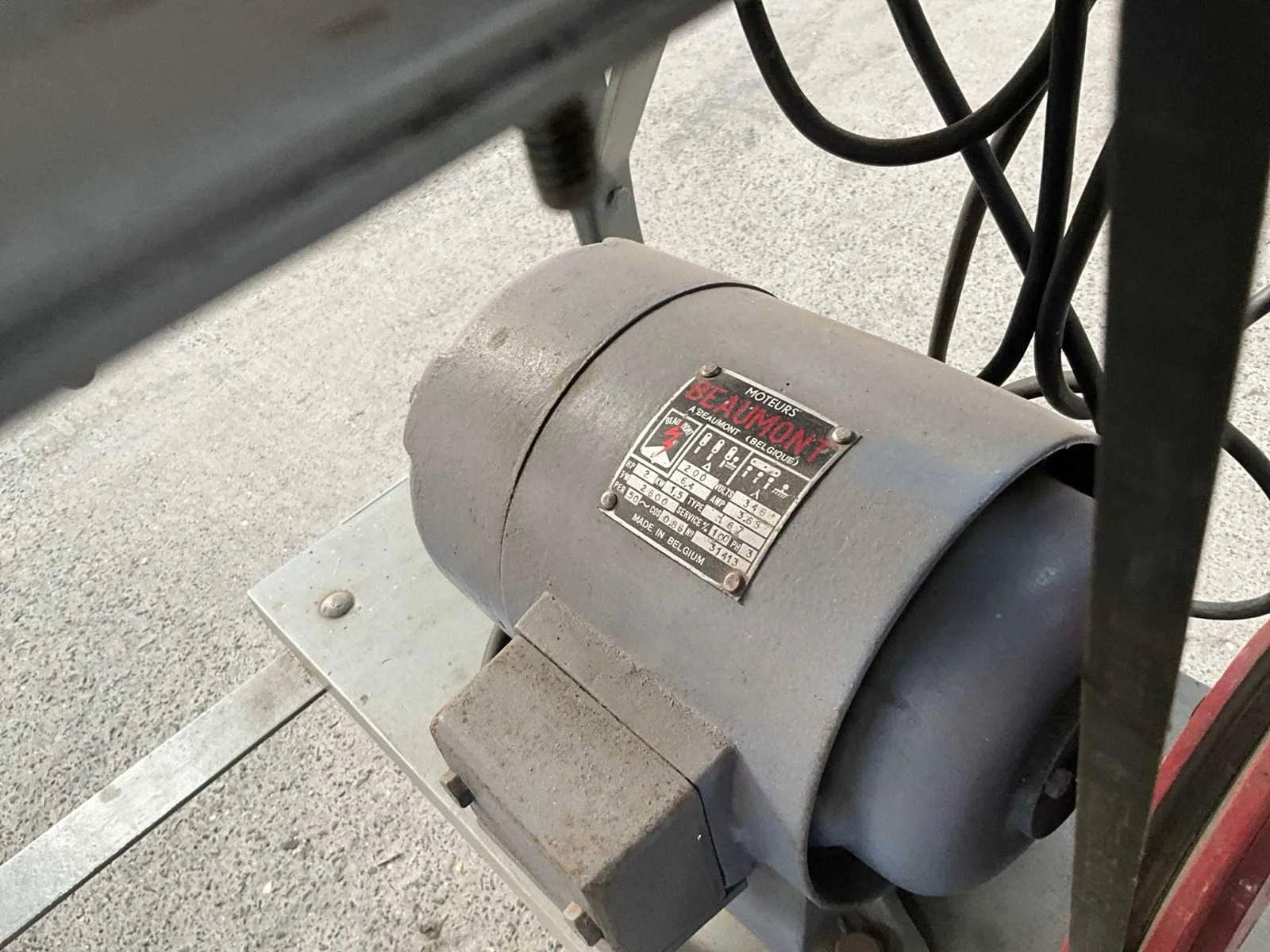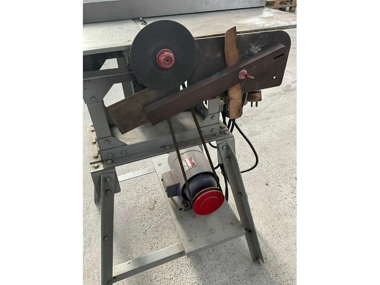 Boormachine/slijpmachine op metalen onderstel, vooraan verstelbaar, voorzien van motor BEAUMONT. Compleet met enig toebehoren in pvc bak waaronder voornamelijk diverse slijpschijven. Nee