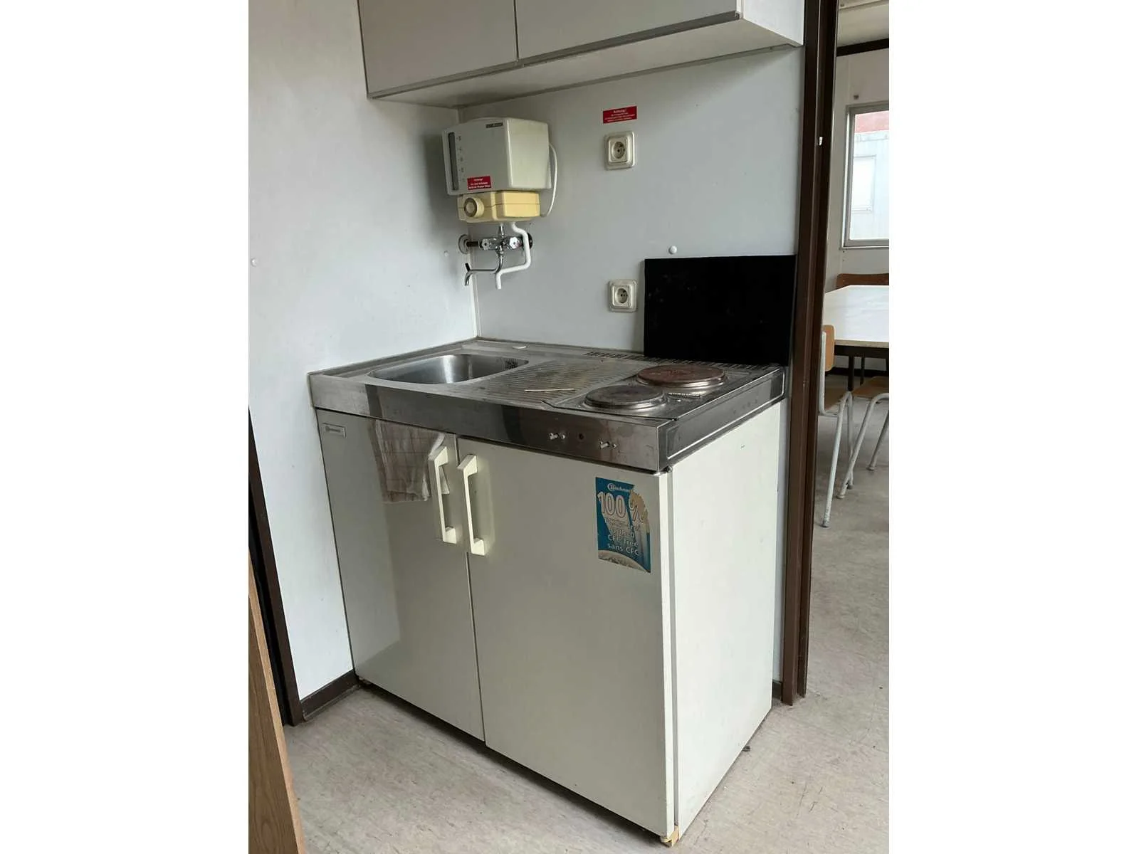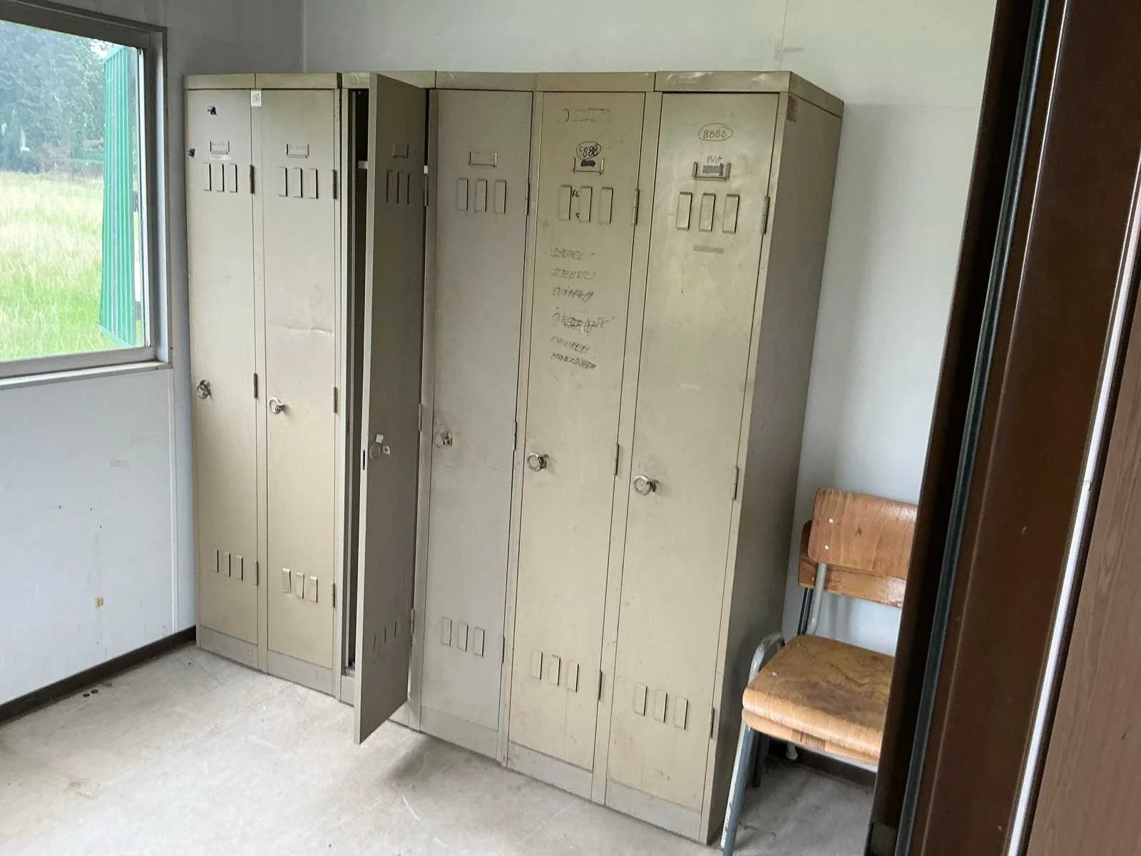 <li>bestaande uit kleedruimte met 3 lockerkasten - keukenruimte voorzien van kitchenette met koelkast en dubbele kookplaat en warmwaterboiler - toilet met lavabo - refter met tafel en 11 stoelen </ul> <li>voorzien van zekeringskast verlichting, stopcontacten </ul> <li>aantal ramen: 5 voorzien van ijzeren luiken</ul> Nee Totale afmeting L: 8000mm Totale afmeting Hoogte: 2800mm