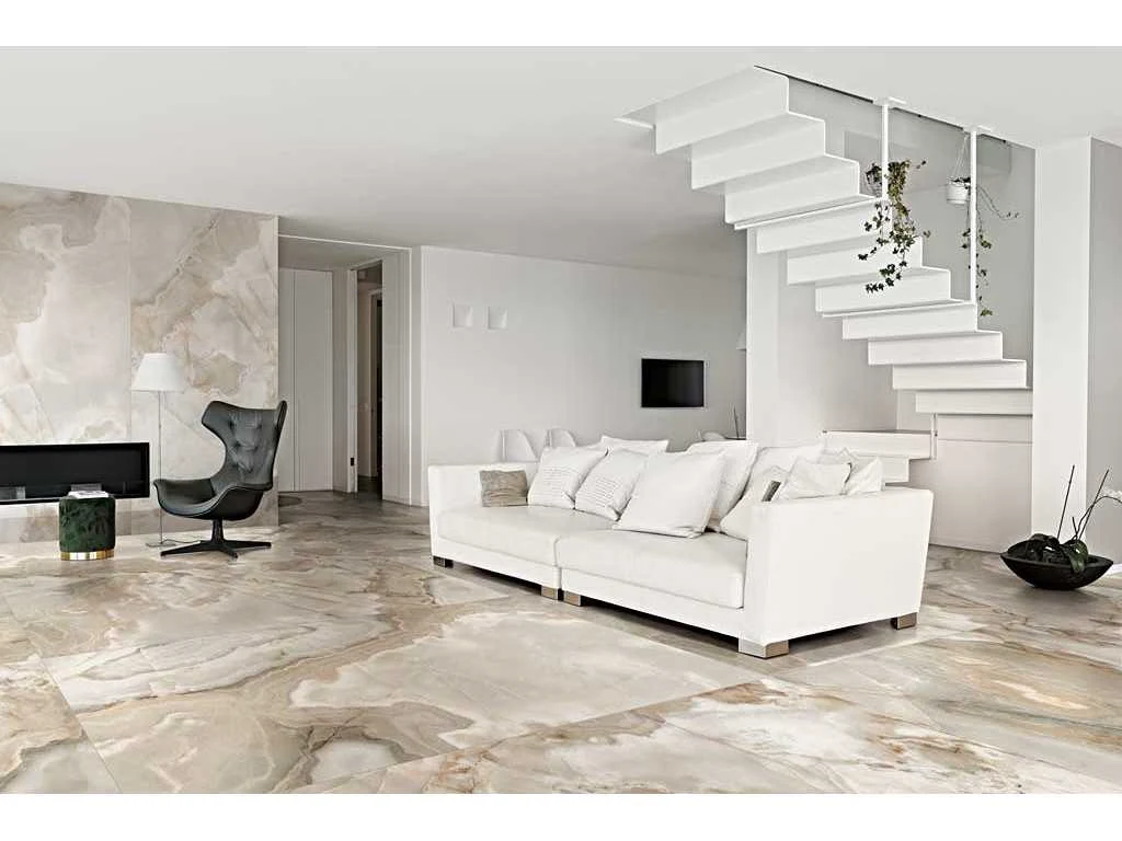 Tegel Onyx Noisette glanzend 60x120cm gerectificeerd, 64,8m2, 6mm dikte, made in Italy, keramische vloer- en wandtegel, vorst- en krasbestendig, 1 pallet 80x120cm, ca. gewicht 1100kg No Lengte: 1200mm Breedte: 600mm Dikte: 6mm Aantal m² per verpakking: 2.16m² Totaal oppervlakte: 64.8m² Totaal gewicht: 1100kg