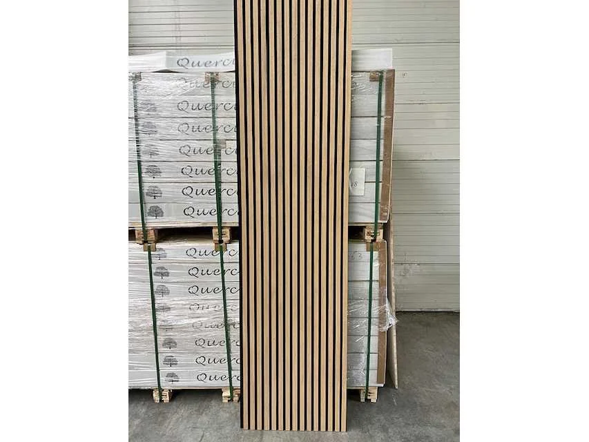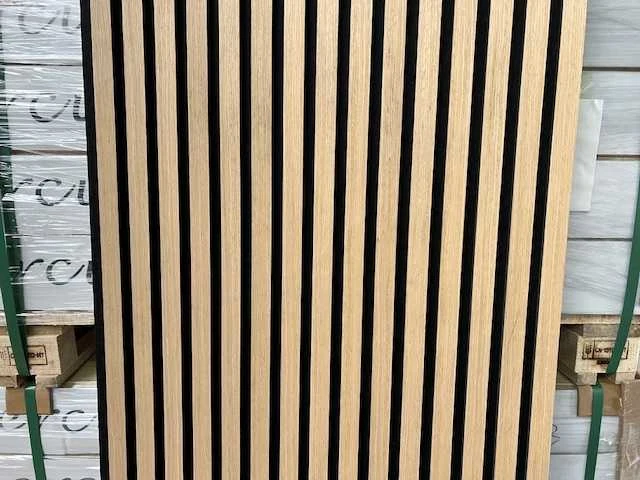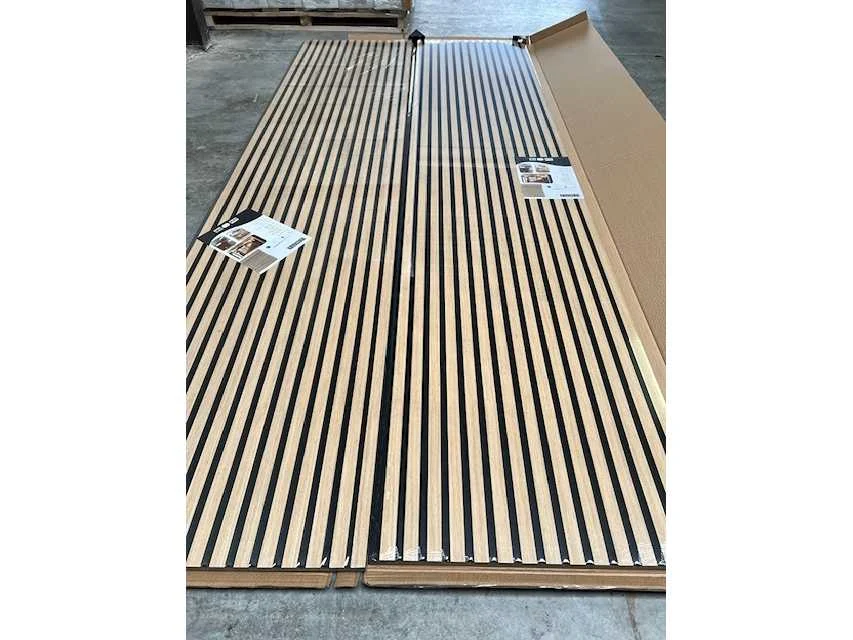 3D Akoestisch Wandpaneel Wit Eiken 272x62x5cm 2 panelen/doos 1 doos = 25kg 6 dozen in totaal = 12 panelen totaal gewicht 150kg No Kleur: White Oak Gewicht: 25kg Lengte: 272cm Breedte: 62cm Hoogte: 5cm