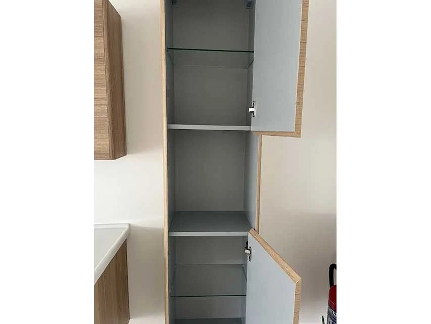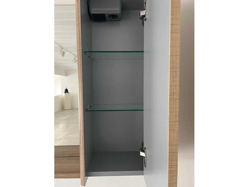 100cm, keramische wastafel, 2 lades, spiegel met kast en licht, zijkast ( 168x40cm) No Hoogte: 54cm Lengte: 100cm Breedte: 45cm Kleur: oak Wastafel: keramisch Spiegelkast: true Spiegel: ja Spiegel met verlichting: led Verlichting: led Lades: 2 Softclose: true Bevestigingsmateriaal: true Zijkast: ja