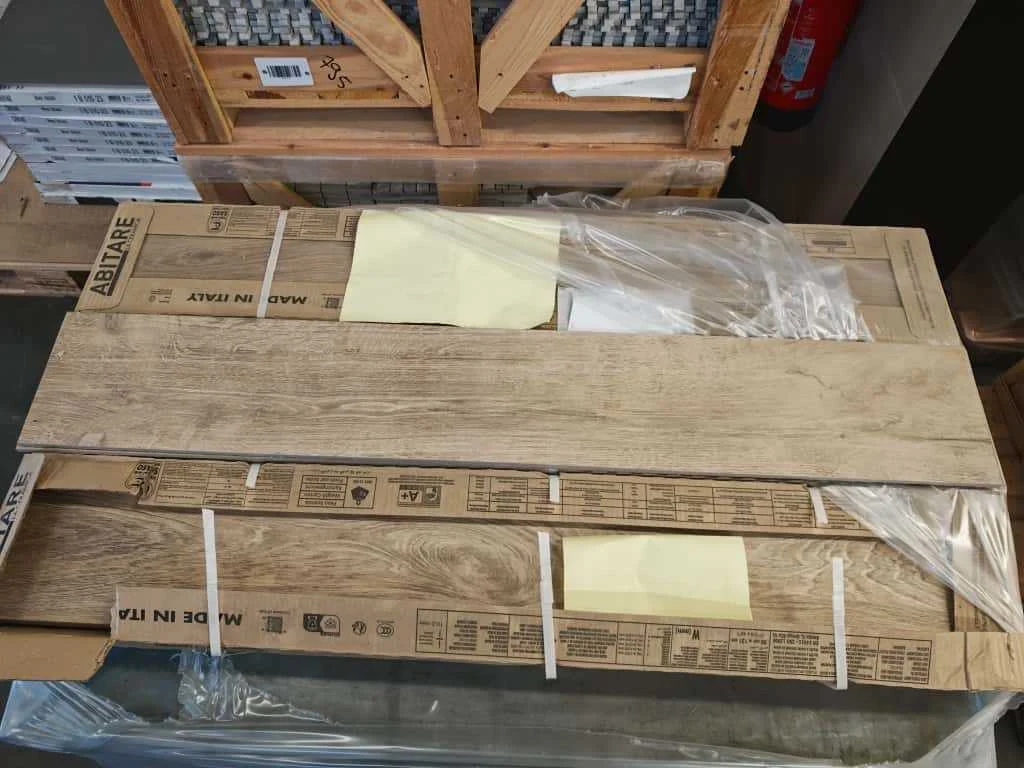 No Merk: Abitare Kleur: Teak Afwerking: Mat R9 Lengte: 200mm Breedte: 1210mm Dikte: 10mm Materiaal: Keramiek Type: Vloertegel Model: Devon Style: Houtlook Aantal m² per verpakking: 1.452m² Aantal pakken: 6 Totaal oppervlakte: 8.76m² Totaal gewicht: 180kg