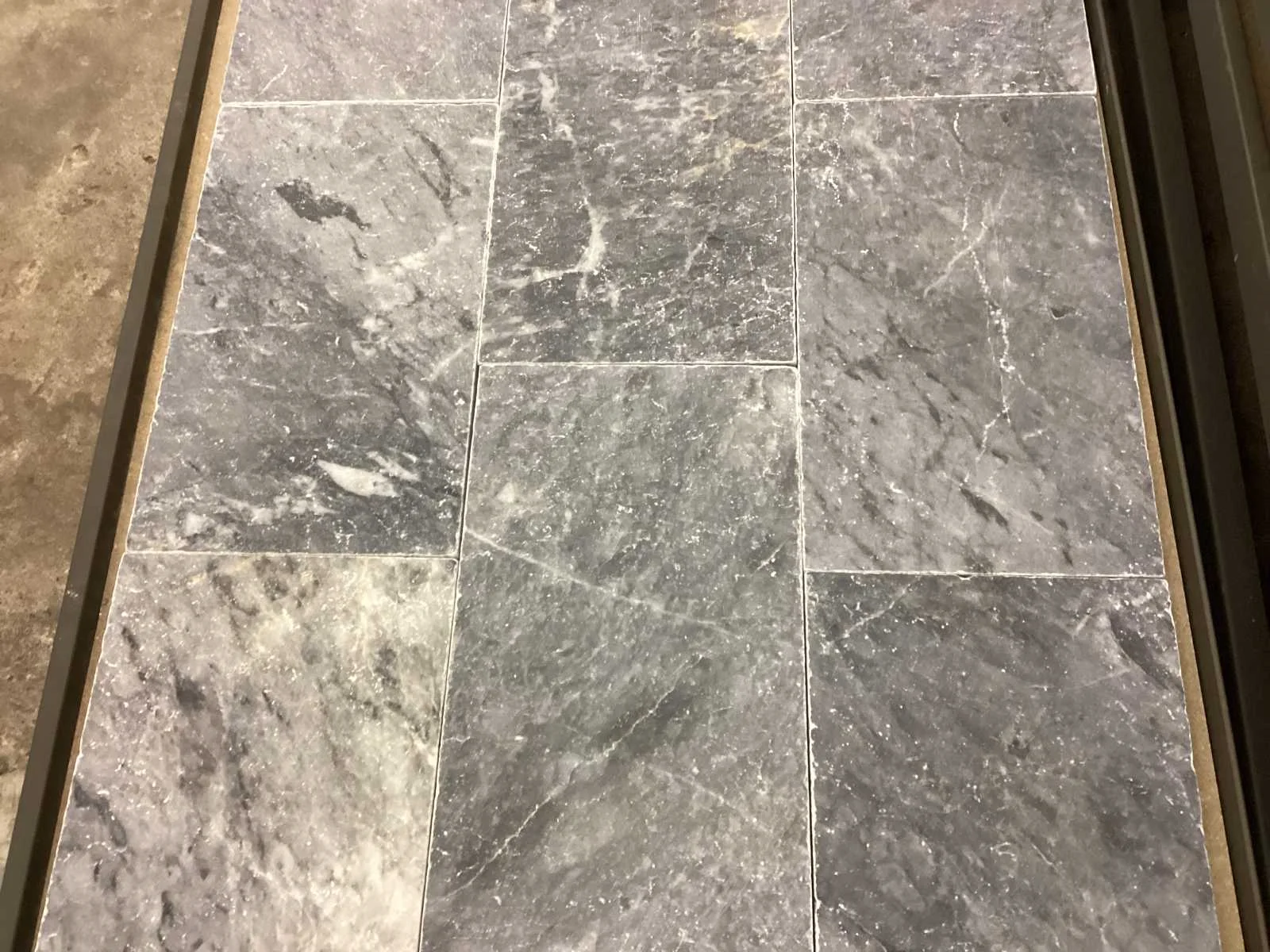 Afmeting vrije lengte x30x2 cm.. No Merk: Natuursteen Kleur: Blauw Afwerking: Gezoet en Getrommeld Lengte: 300mm Breedte: 500-600-700-800mm Dikte: 20mm Materiaal: Hardsteen Type: Vloertegel Totaal oppervlakte: 64,8m² Totaal gewicht: 3200kg