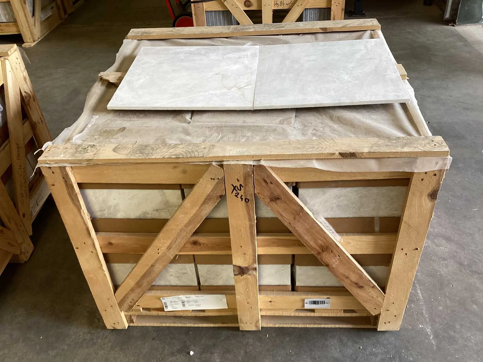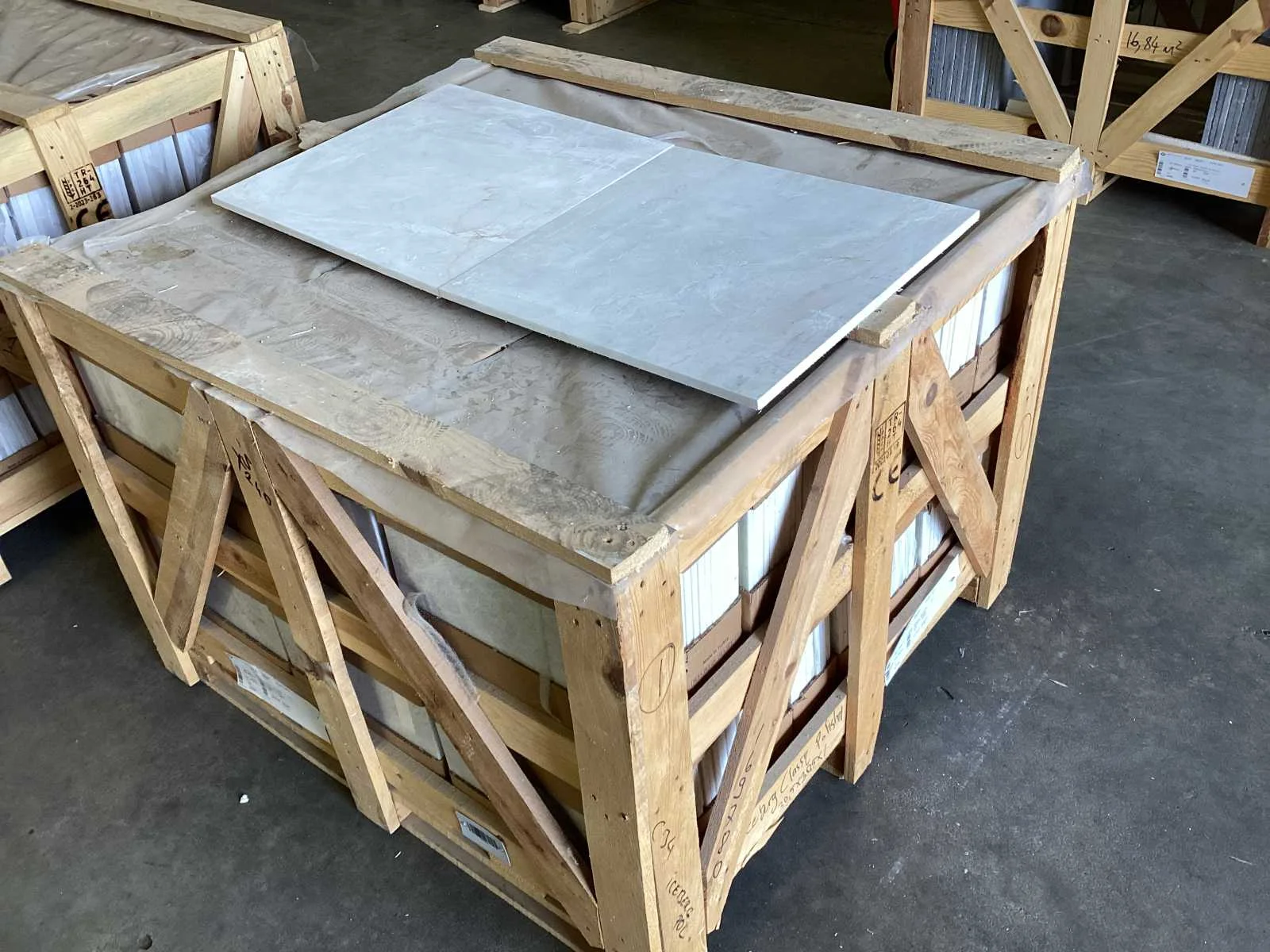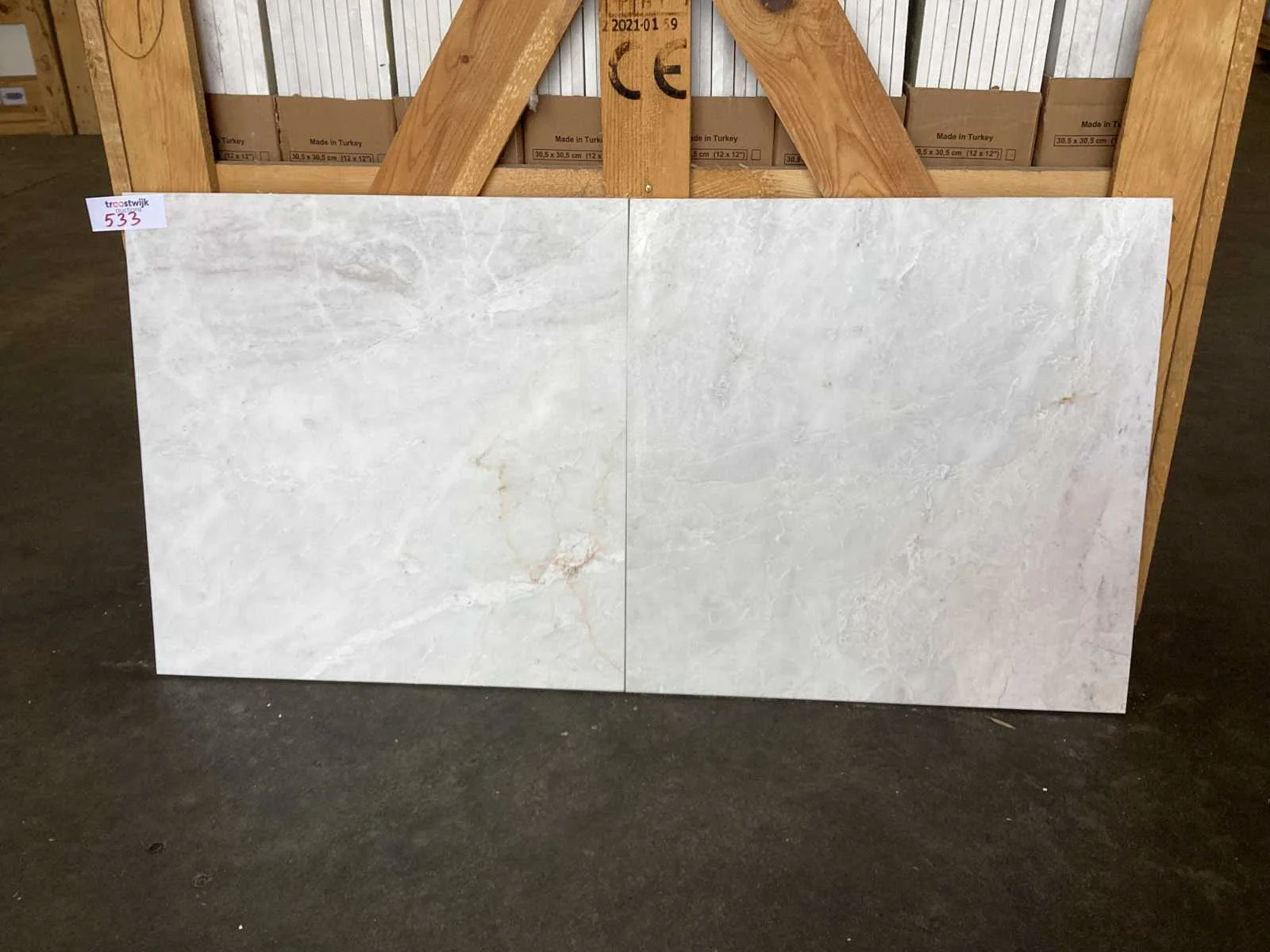 Nee Merk: Natuursteen Kleur: Wit Afwerking: Gezoet Lengte: 457mm Breedte: 457mm Dikte: 12mm Materiaal: Marmer Type: Vloertegel Model: Iceberg Classic Aantal m² per verpakking: 1m² Aantal pakken: 45 Totaal oppervlakte: 45m² Totaal gewicht: 1350kg