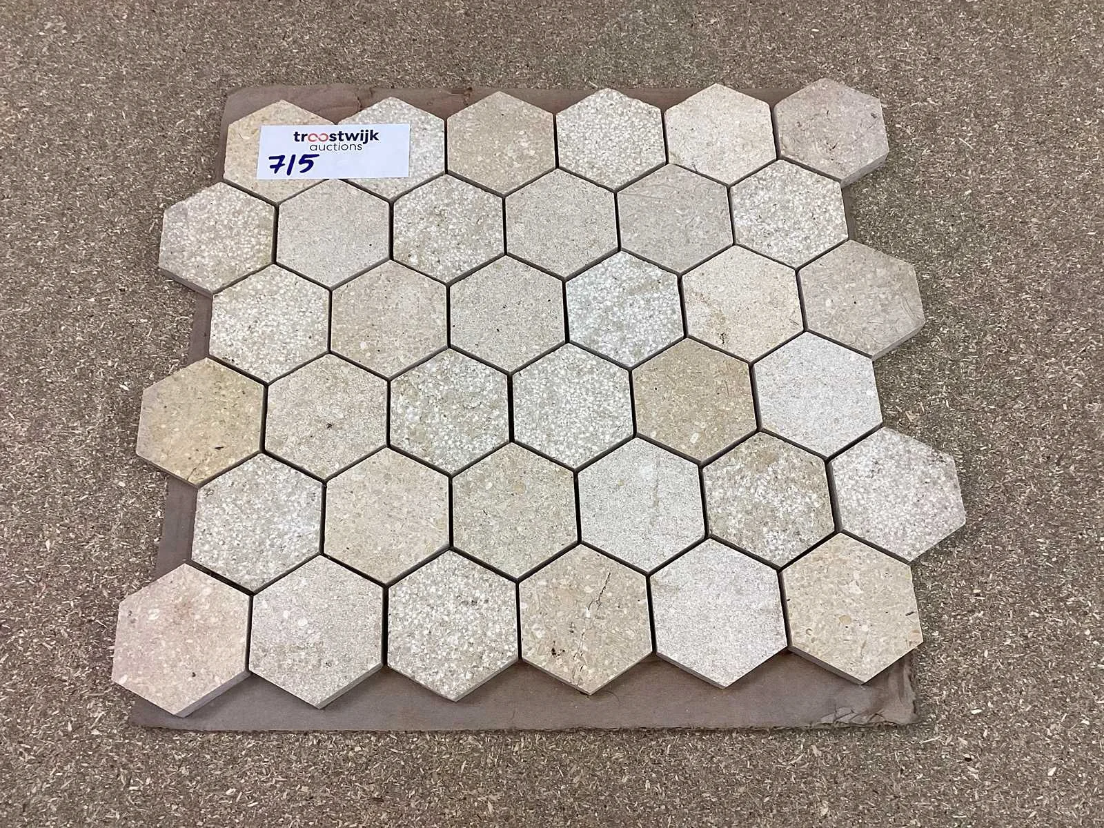 Natuursteen limestone beige mix hexagon 5x5 cm mozaïektegel 30x30 cm 19 stuks
