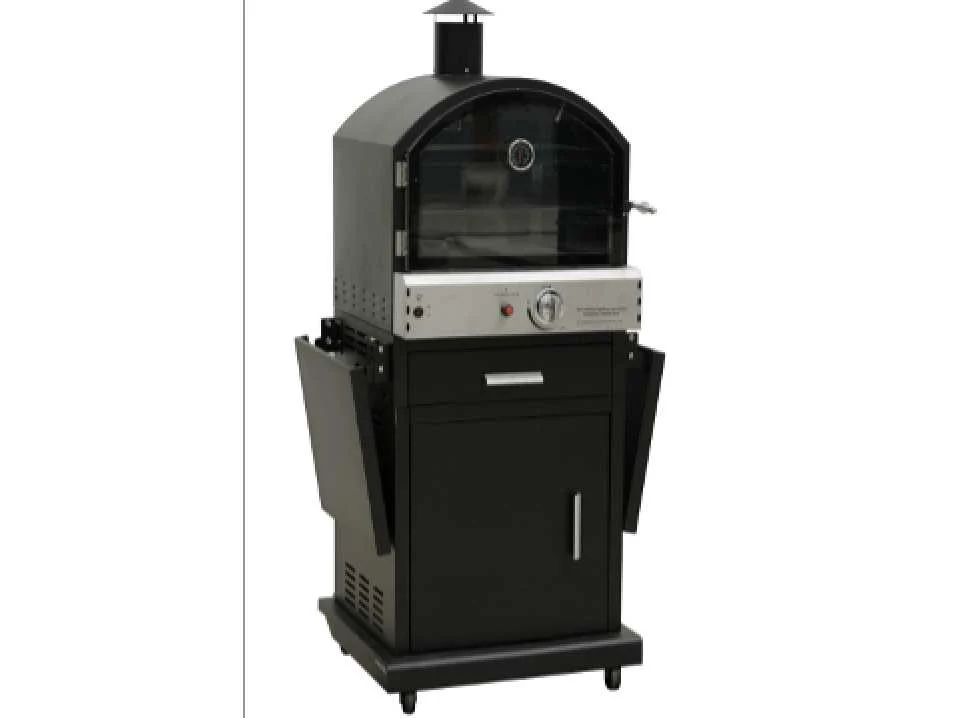 Sice : 1390 x 648 x 1500 mm Materiaal van brander : 304 Stainless steel Buiten materiaal : Staal met powder coating Glazen deur met stalen handvat Grote van kook ruimte : 491 x 427 mm Gas used : Propane gas Food safe Pizza stones ice : 465 x 355 mm Full view front window with temp. gauge Nee