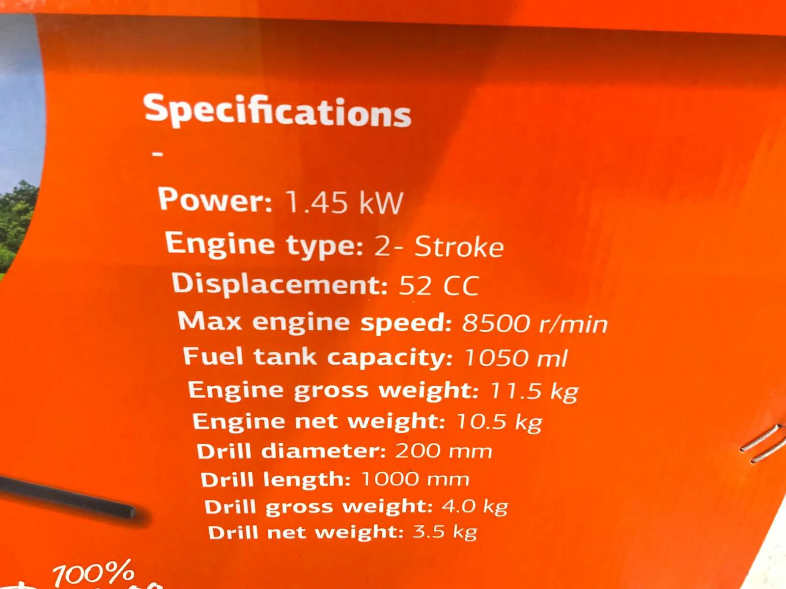Boorlengte 1000mm; boor diameter 200mm; tankcapaciteit 1050ml; engine speed 8500rpm; 1.45KW; 2 takt; 52cc; 6170 Nee Merk: Daewoo Product type: DAEAXB520 Kleur: grijs
