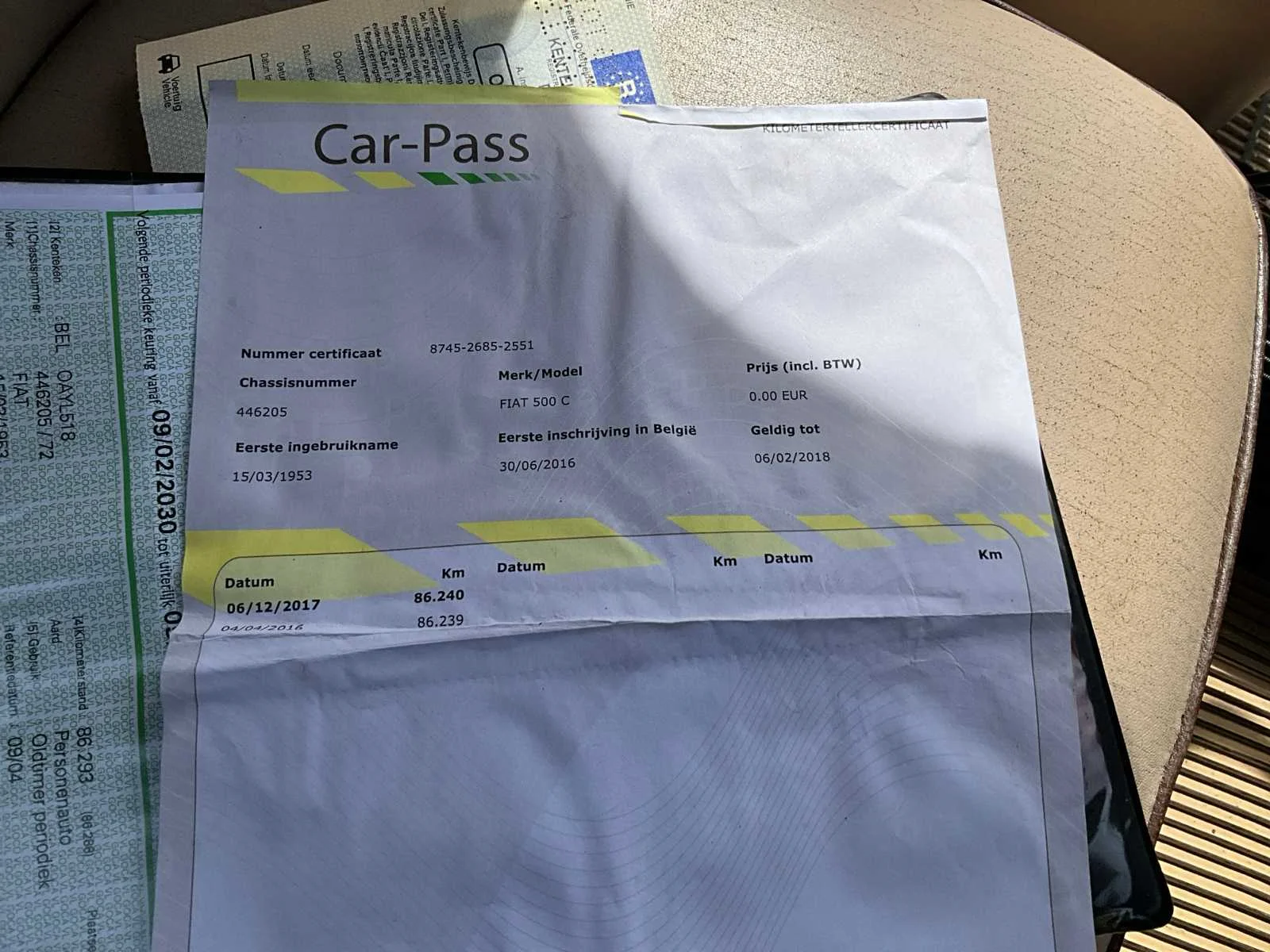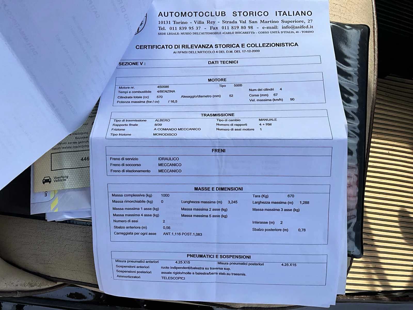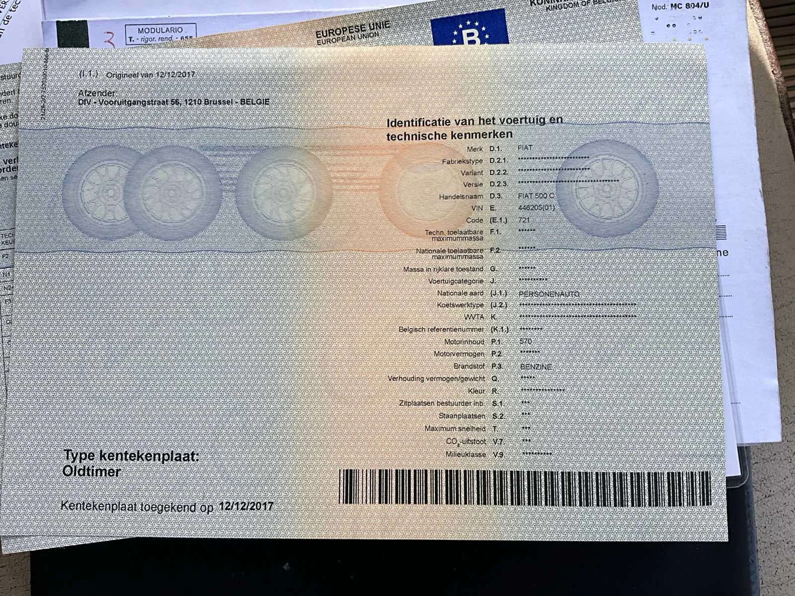 Opberghoes aanwezig. Nee Merk: Fiat Type: 500C Bouwjaar: 1953 Chassisnummer: 446205 Brandstof: Benzine Datum eerste toelating: 15/03/1953 Nationaliteit documenten: België Aantal sleutels: 2