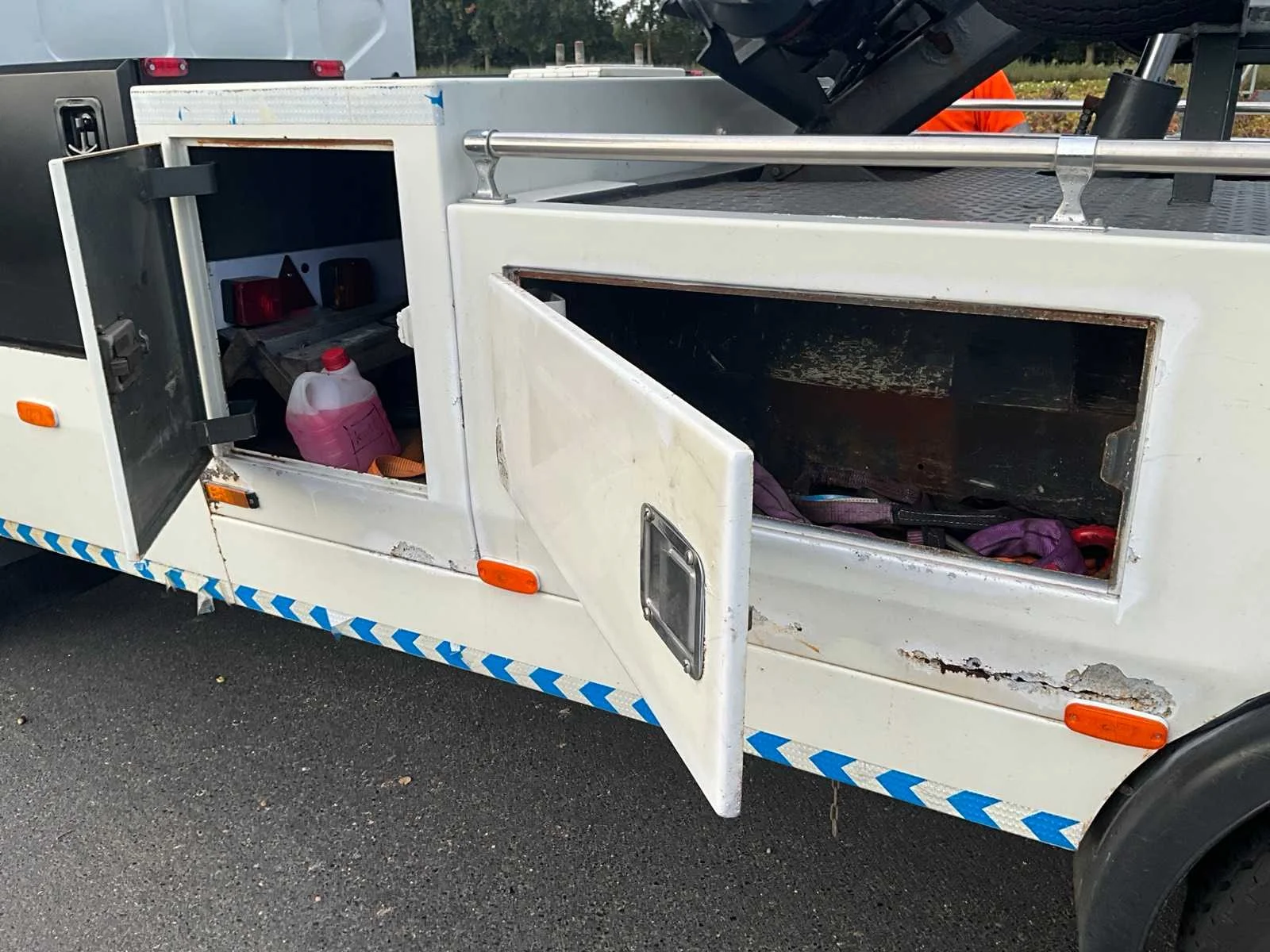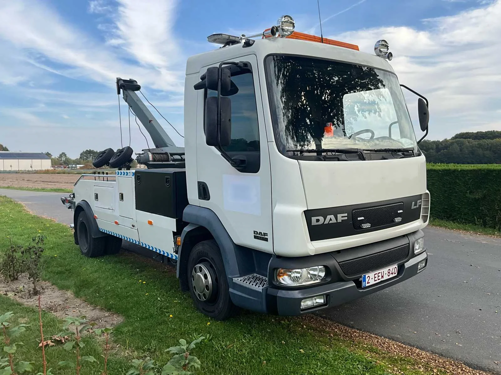 Voorzien van: 2x hydraulische winch, bril met diverse beugels, hydraulische kraan, extra LED zwaailichten, enkele extra attributen maximaal trekgewicht: 15490 kg ook geschikt voor bet takelen van bestelwagens boorddocumenten: gelijkvormigheidsattest, inschrijvingsbewijs, identificatieverslag Nee Merk: DAF Type: LF45 Bouwjaar: 2006 Chassisnummer: XLRAE45BF0L321622 Afgelezen kilometerstand: 174002km Cilinderinhoud: 3920cc Vermogen (kW): 110kW Brandstof: Diesel Datum eerste inschrijving: 20/08/2006 Transmissie: Handgeschakeld Nationaliteit documenten: Belgisch Aantal deuren: 2 Aantal sleutels: 1 Ledig gewicht: 6110kg Emissieklasse: Euro 3 Boorddocumenten aanwezig?: true Startinformatie: Start en rijdt Maximaal trekgewicht geremd: 15490