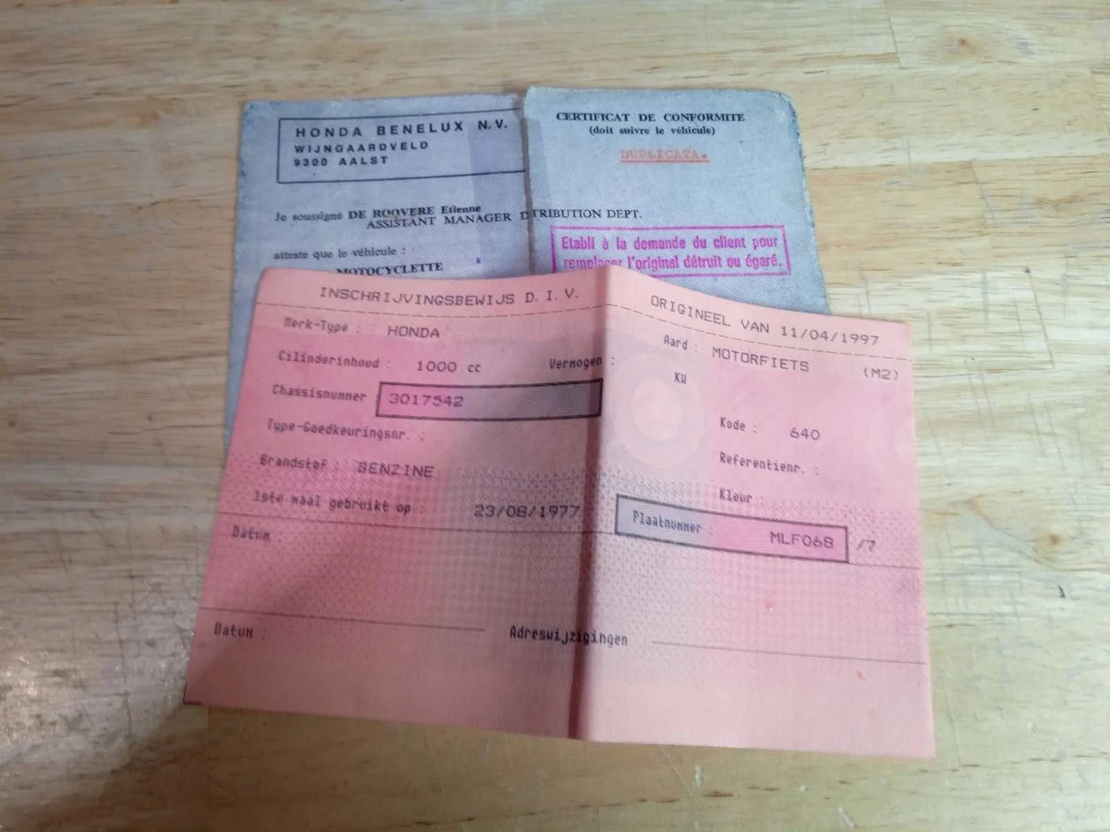 Inschrijvingsbewijs aanwezig, gelijkvormigheidsattest aanwezig Opmerking: Moto start niet - Werking niet gekend restauratieproject .Staat al 2 jaar stil+ lichte schade aan spatbord Nee Merk: HONDA Model: GL 1000 Brandstof: BENZINE Chassisnummer: 3017542 Cilinderinhoud: 1000cc Datum eerste toelating: 23/08/1977 Boorddocumenten aanwezig?: true Aantal sleutels: 1 Startinformatie: start niet accu vervangen Bouwjaar: 1977