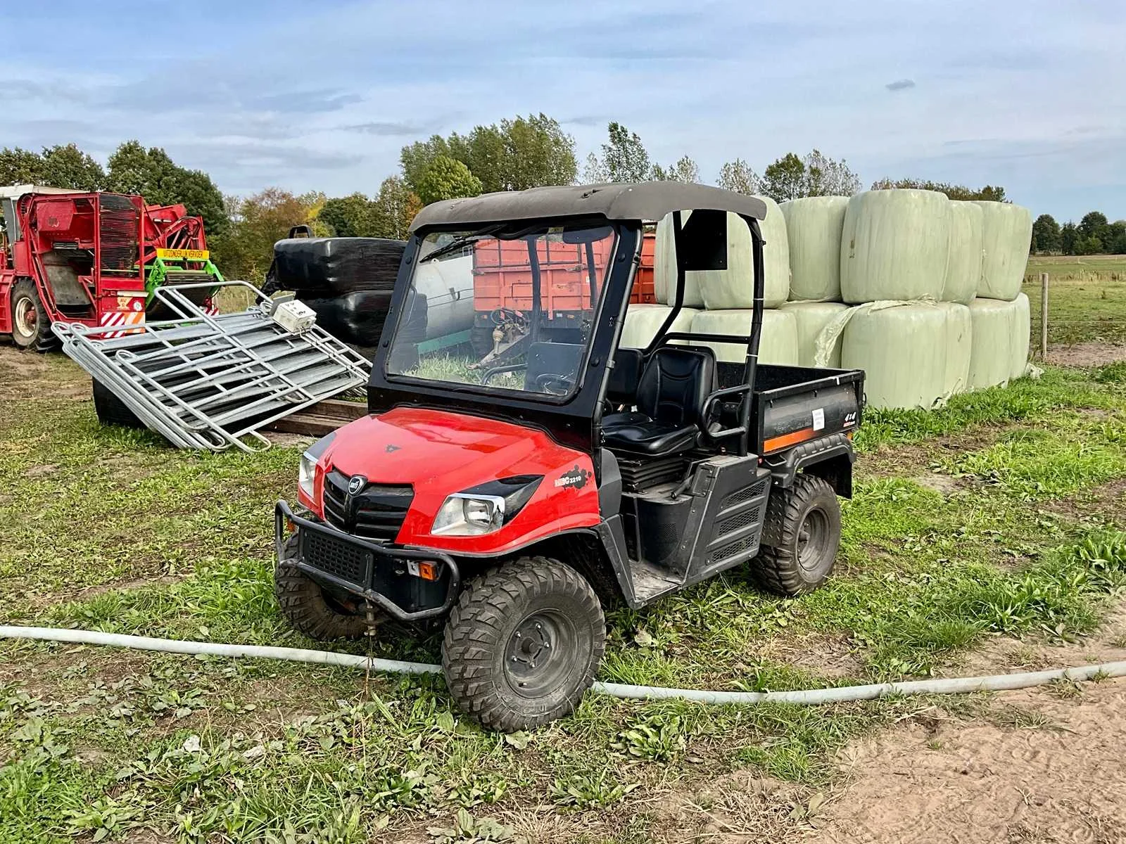 -technisch en motorisch goed -hoog en lage rijsnelheid -4x4 -differentieelslot -diesel -nl kenteken -bj 2014 -1755 afgelezen uren -netjes onderhouden -kiepbak -stuurbekrachtiging Nee Merk: Kioto Model: Mechron UTV 2210 Product type: Buggy Chassisnummer: PY0100022 Transmissie: Automaat Datum eerste toelating (NL): 30/06/2014 Bouwjaar: 2014 Afgelezen kilometerstand: 1755km Cilinderinhoud: 2200cc Brandstof: Diesel Kleur omschrijving: Oranje