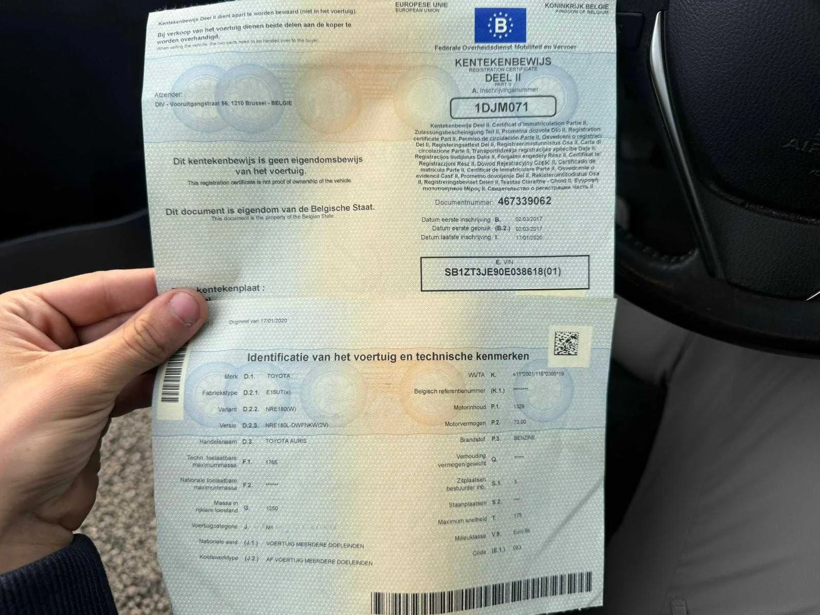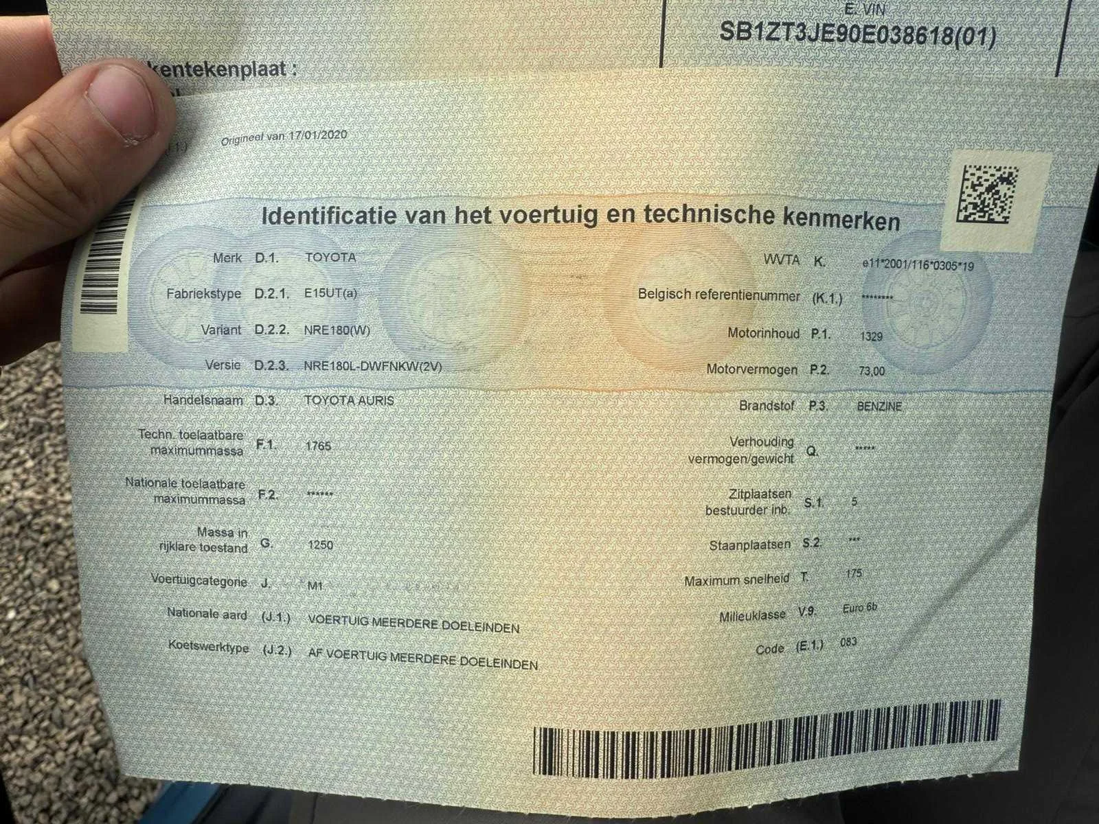 Toyota Auris van het bouwjaar 2017. De wagen start en rijdt zonder problemen. Documenten aanwezig, zie foto’s voor details. Nee Merk: Toyota Model: Auris Bouwjaar: 2017 Afgelezen kilometerstand: 197138km Cilinderinhoud: 1329cc Vermogen (kW): 73kW Brandstof: benzine Chassisnummer: SB1ZT3JE90E038618 Datum eerste toelating: 02/03/2017 Aantal zitplaatsen: 5 Kleur: Blauw Transmissie: Handgeschakeld Emissieklasse: Euro 6b Aantal deuren: 5 Aantal sleutels: 2 Nationaliteit documenten: België Vavato voert geen technische keuring uit.: true Inschrijvingsbewijs - deel 1 : Aanwezig Inschrijvingsbewijs - deel 2: Aanwezig
