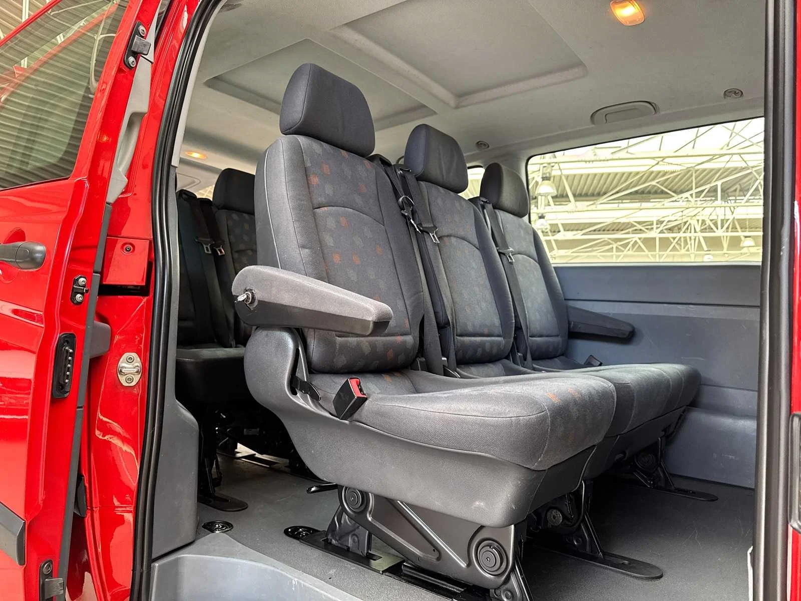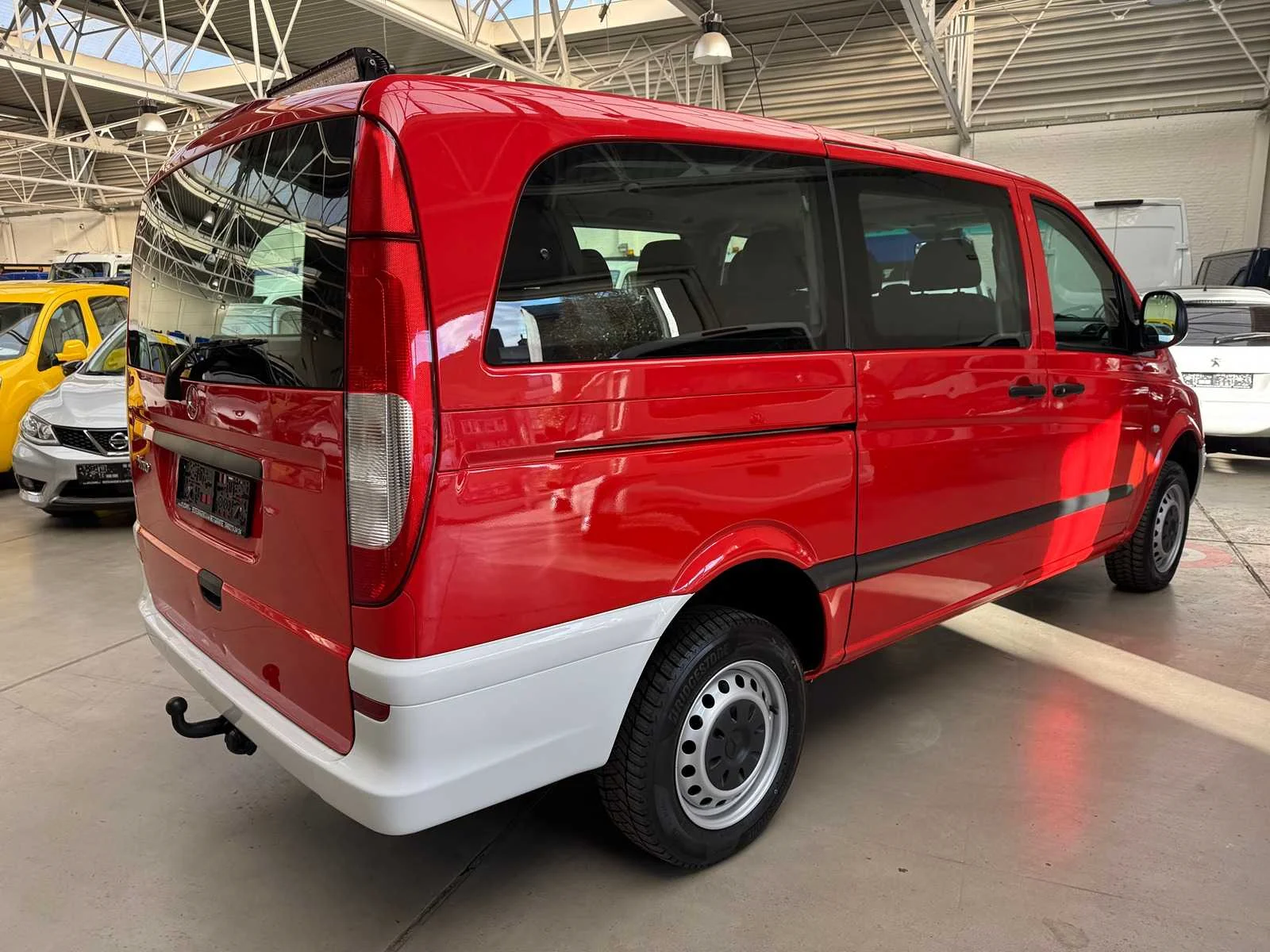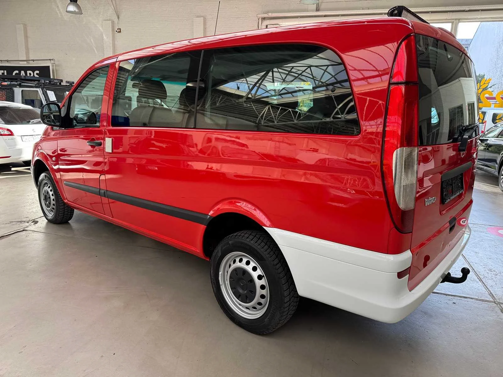 Mercedes Vito 2.2 Diesel Minibus 9 zitplaatsen 4x4 Airco Zetelverwarming 220v aanwezig Armsteunen Schuifdeur Multifunctioneel Stuurwiel Elektrisch bedienbare ruiten Elektrisch verstelbare buitenspiegels Radio Handsfree Boordcomputer Trekhaak 2 Ton ASR Boorddocumenten aanwezig No Merk: Mercedes Model: Vito Type: 4x4 Bouwjaar: 2006 Afgelezen kilometerstand: 229029km Cilinderinhoud: 2148cc Vermogen (kW): 80kW Brandstof: Diesel Chassisnummer: WDF63970313203184 Laadvermogen: 790kg Datum eerste toelating: 16/01/2006 Vermogen (pk): 109hp Aandrijving: Ja Aantal zitplaatsen: 9 Maximaal trekgewicht ongeremd: 750kg Maximaal trekgewicht geremd: 2000kg Kleur: Rood Transmissie: Handmatig Emissieklasse: Euro 4 Aantal deuren: 5 Aantal sleutels: 2 Ledig gewicht: 2150kg Aantal cilinders: 4 Carrosserie: 4x4 Nationaliteit documenten: Duitsland Start en rijdt: Ja startinformatie : Start en rijdt No self drive export!: true Vavato voert geen technische keuring uit.: true Airconditioning: true Vierwielaandrijving 4x4: true Inschrijvingsbewijs - deel 1 : Aanwezig Inschrijvingsbewijs - deel 2: Aanwezig