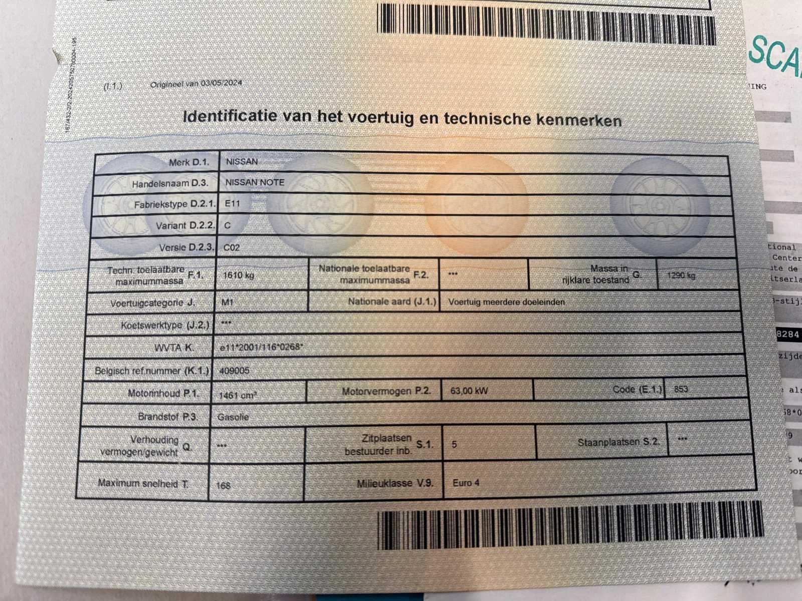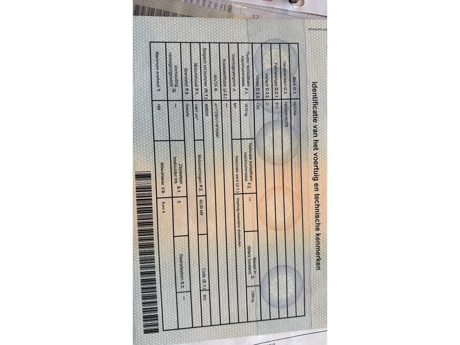Nee Merk: Nissan Model: Note Bouwjaar: 2009 Afgelezen kilometerstand: 237012km Cilinderinhoud: 1461cc Vermogen (kW): 63kW Brandstof: diesel Chassisnummer: SJNFDAE11U2008284 Datum eerste toelating: 17/04/2009 Transmissie: Handgeschakeld Start en rijdt: Ja startinformatie : Start en rijdt Inschrijvingsbewijs - deel 1 : Aanwezig Inschrijvingsbewijs - deel 2: Aanwezig
