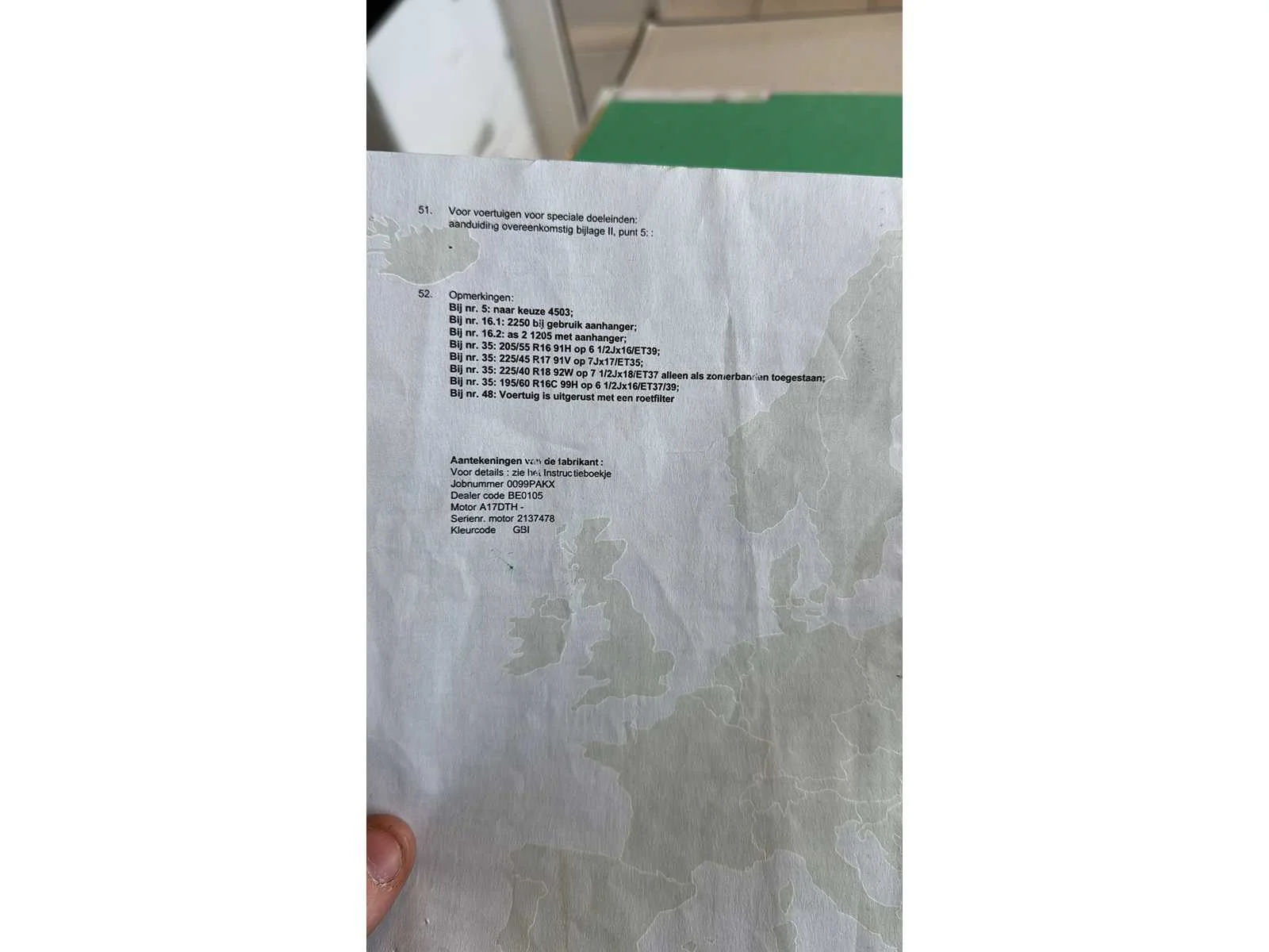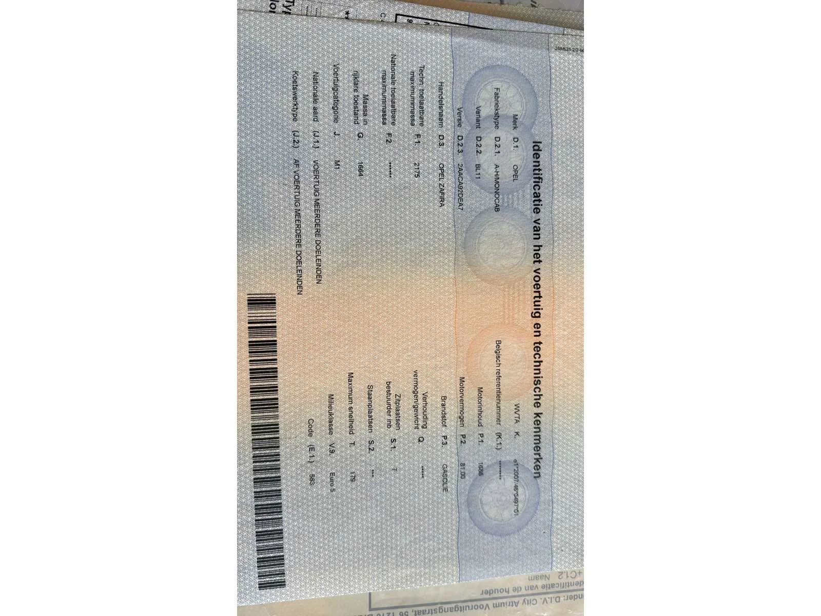Nee Merk: Opel Model: Zafira Bouwjaar: 2011 Afgelezen kilometerstand: 281065km Cilinderinhoud: 1686cc Vermogen (kW): 81kW Brandstof: diesel Chassisnummer: W0L0AHM75B2040501 Datum eerste toelating: 21/02/2011 Transmissie: Handgeschakeld Nationaliteit documenten: Belgisch Start en rijdt: Ja startinformatie : Start en rijdt Inschrijvingsbewijs - deel 1 : Aanwezig Inschrijvingsbewijs - deel 2: Aanwezig