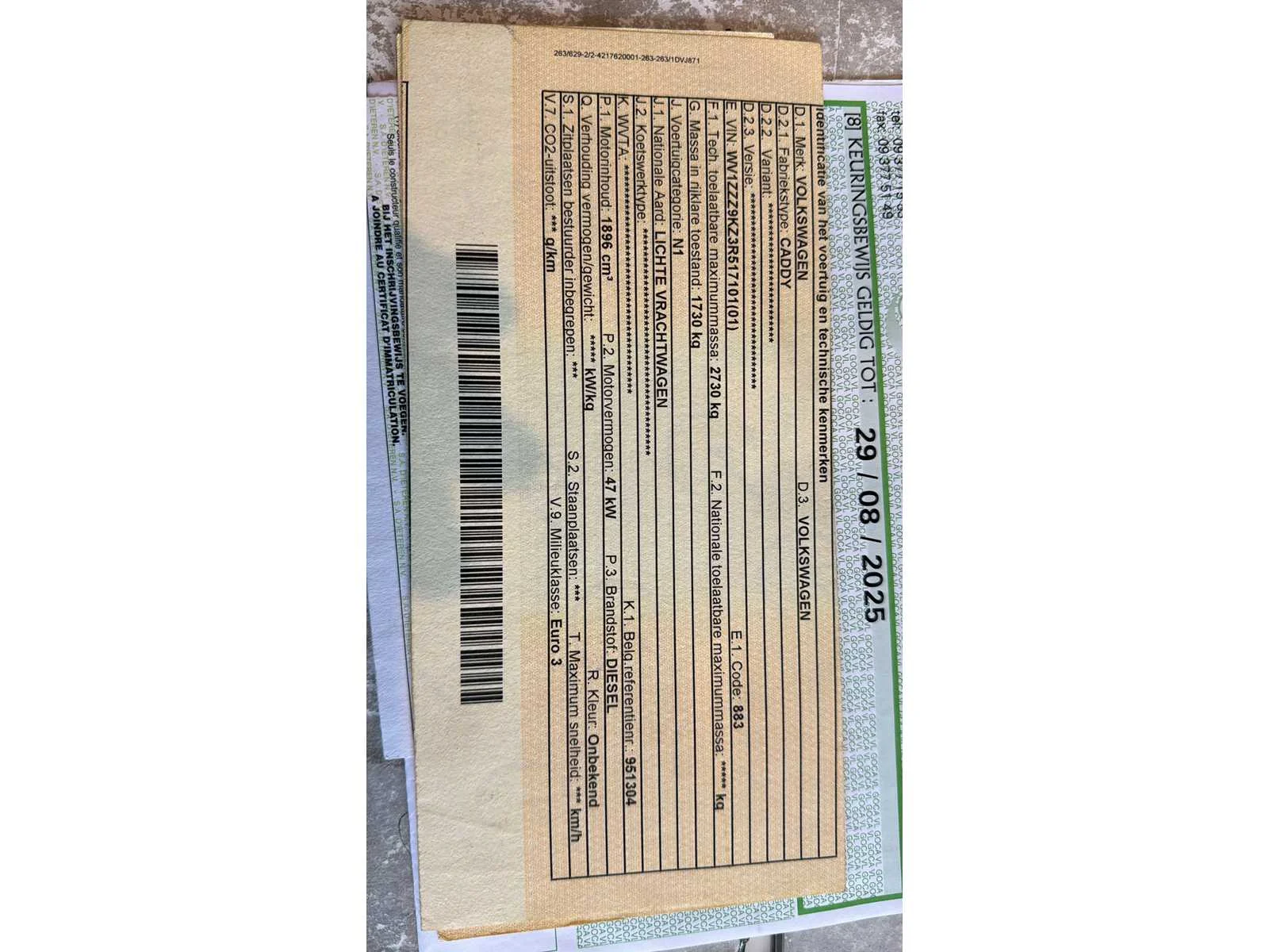 Nee Merk: Volkswagen Model: Caddy Bouwjaar: 2003 Afgelezen kilometerstand: 262941km Cilinderinhoud: 1896cc Vermogen (kW): 47kW Brandstof: diesel Chassisnummer: WV1ZZZ9KZ3R517101 Datum eerste toelating: 13/02/2003 Transmissie: Handgeschakeld Nationaliteit documenten: Belgisch Start en rijdt: Ja startinformatie : Start en rijdt Inschrijvingsbewijs - deel 1 : Aanwezig Inschrijvingsbewijs - deel 2: Aanwezig