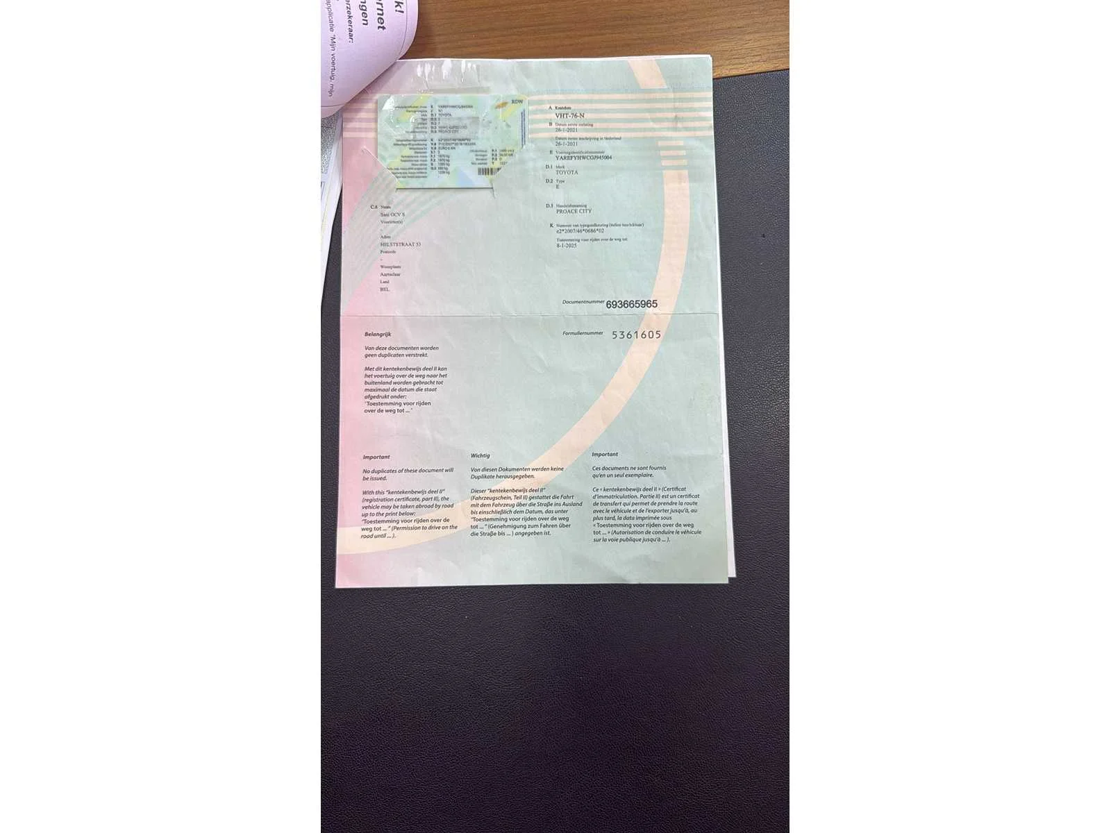 Nederlands kentekenbewijs, reeds in België gekeurd. Nee Merk: Toyota Type: Proace City Bouwjaar: 2021 Afgelezen kilometerstand: 80505km Cilinderinhoud: 1499cc Vermogen (kW): 56kW Brandstof: Diesel Chassisnummer: YAREFYHwCGJ945004 Datum eerste toelating: 26/01/2021 Aantal zitplaatsen: 2 Transmissie: Handgeschakeld Aantal cilinders: 4 Start en rijdt: Ja Keuringsrapport geldig tot: 06/03/2026 Vavato voert geen technische keuring uit.: true Airconditioning: true