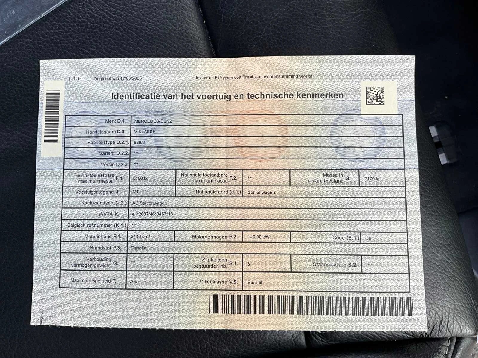 Er zitten nog 2 extra stoelen bij (apart). 4 x extra banden (met velg). Heeft dode hoek. Heeft aircozone tot achteraan de wagen. Instaphelper. Nee Merk: Mercedes-Benz Model: V-klasse Bouwjaar: 2017 Aantal sleutels: 2 Start en rijdt: Ja Xenon verlichting: true LED-koplampen: true Inschrijvingsbewijs - deel 1 : Aanwezig Inschrijvingsbewijs - deel 2: Aanwezig