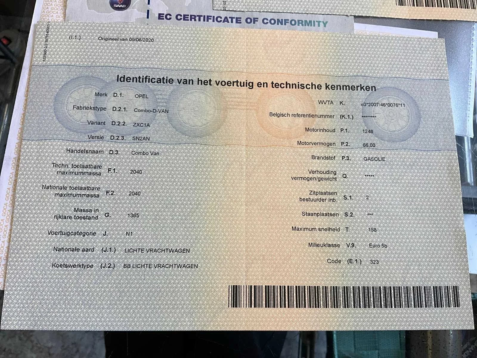 Nieuwe turbo en 4 nieuwe banden. Nee Merk: Opel Model: Combo-D-Van Bouwjaar: 2016 Afgelezen kilometerstand: 114155km Cilinderinhoud: 1248cc Vermogen (kW): 66kW Brandstof: diesel Chassisnummer: W0L6ZYC1AH9596145 Datum eerste toelating: 23/06/2016 Aantal zitplaatsen: 2 Transmissie: Handgeschakeld Emissieklasse: Euro 5b Aantal deuren: 3 Aantal sleutels: 2 Nationaliteit documenten: Belgisch Start en rijdt: Ja startinformatie : Start & rijdt Vavato voert geen technische keuring uit.: true Airconditioning: true Inschrijvingsbewijs - deel 1 : Aanwezig Inschrijvingsbewijs - deel 2: Aanwezig