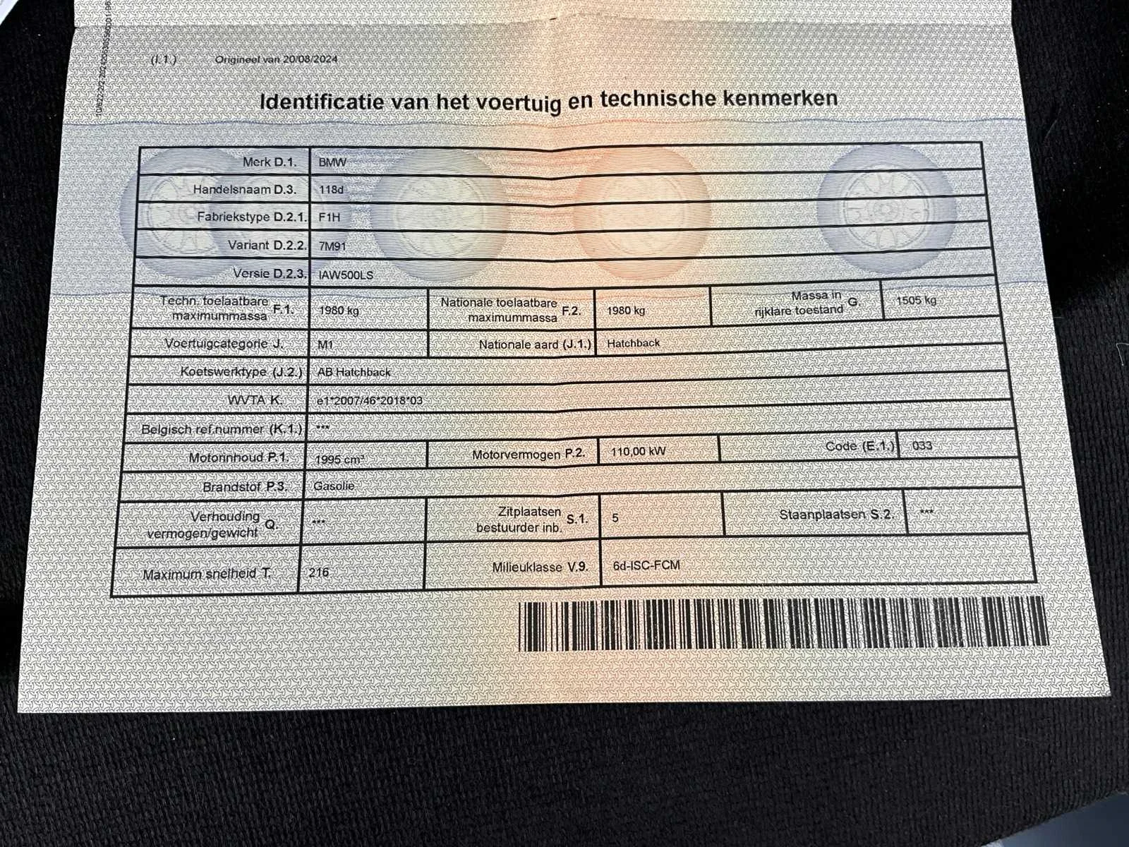 Extra functie is de spoiler. M pakket van binnen en buiten. Heeft recent 4 nieuwe remmen en remschijven, krijgt nog een groot onderhoud met alle filters, ook is er een nieuw motorsteun in geplaatst, heeft 4 nieuwe velgen. Heeft een recente software update gekregen. Keuring gaat de verkoper ook doen. Nee Merk: BMW Model: 118d Bouwjaar: 2020 Cilinderinhoud: 1995cc Vermogen (kW): 110kW Brandstof: diesel Chassisnummer: WBA7M910005S73803 Datum eerste toelating: 30/11/2020 Aantal zitplaatsen: 5 Transmissie: Automaat Emissieklasse: Euro 6d Aantal deuren: 5 Aantal sleutels: 2 Carpass: true Start en rijdt: Ja Vavato voert geen technische keuring uit.: true Airconditioning: true Navigatie: true Inschrijvingsbewijs - deel 1 : Aanwezig Inschrijvingsbewijs - deel 2: Aanwezig