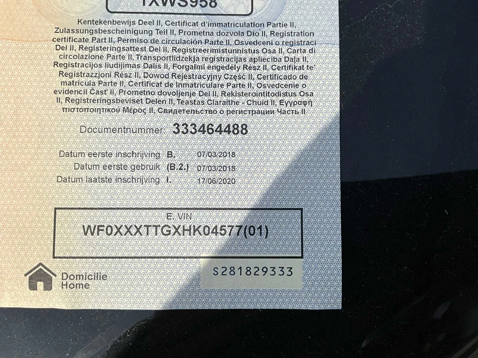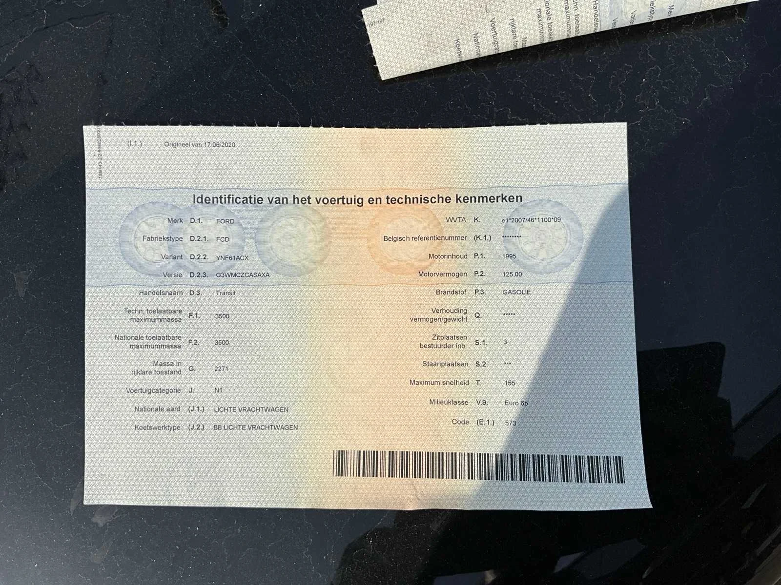 Let op motor kapot. Nee Merk: Ford Model: Transit Bouwjaar: 2018 Cilinderinhoud: 1995cc Vermogen (kW): 125kW Brandstof: diesel Chassisnummer: WF0XXXTTGXHK04577 Datum eerste toelating: 07/03/2018 Aantal zitplaatsen: 3 Transmissie: Handgeschakeld Emissieklasse: Euro 6b Aantal deuren: 5 Nationaliteit documenten: Belgisch Vavato voert geen technische keuring uit.: true Inschrijvingsbewijs - deel 1 : Aanwezig Inschrijvingsbewijs - deel 2: Aanwezig