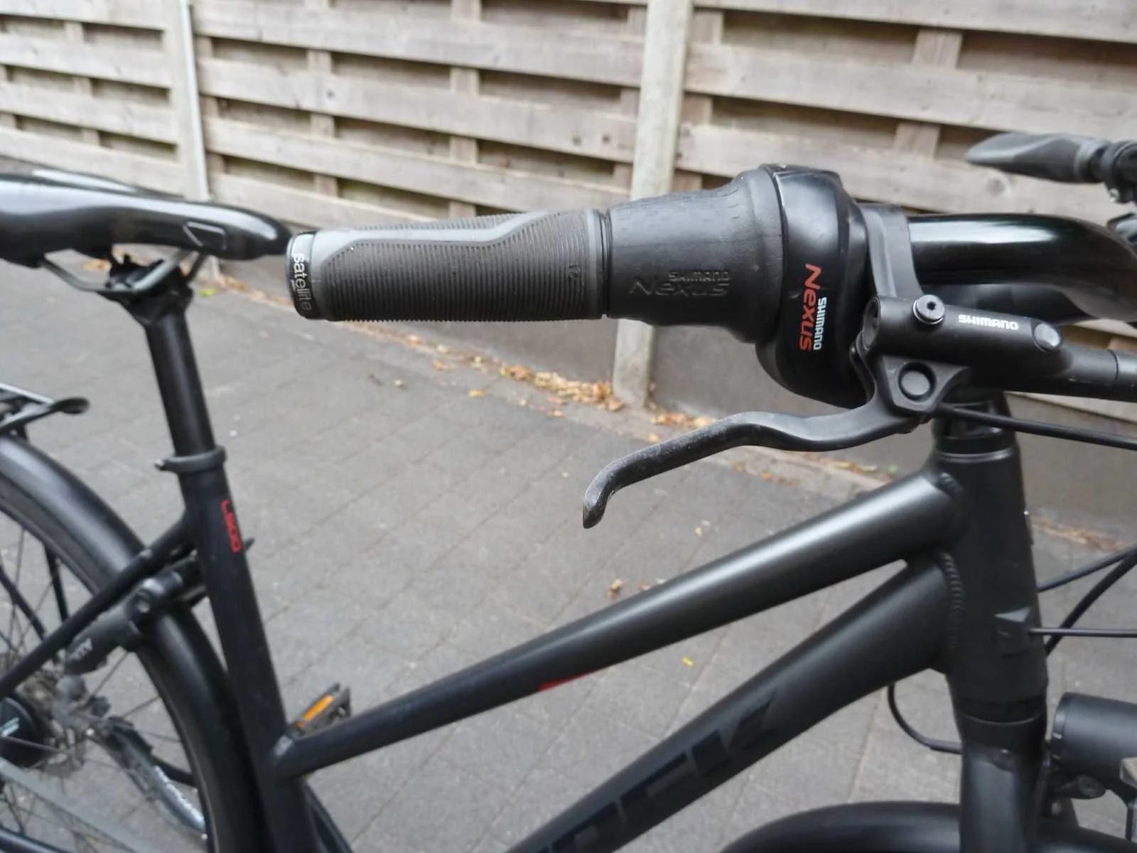 8 versnellingen Shimano Nexus - Schwalbe Marathon plus banden - Aandrijving Gates Carbon Drive - Dynamo in voorwiel - Led verlichting - Hydraulische schijfremmen Shimano - AXA Defender slot met 2 sleutels - rijdt heel vlot Nee Merk: Trek Model: L500 Framemaat: M Remsysteem: hydraulische schijfremmen Versnellingen: 8 Kleur: black