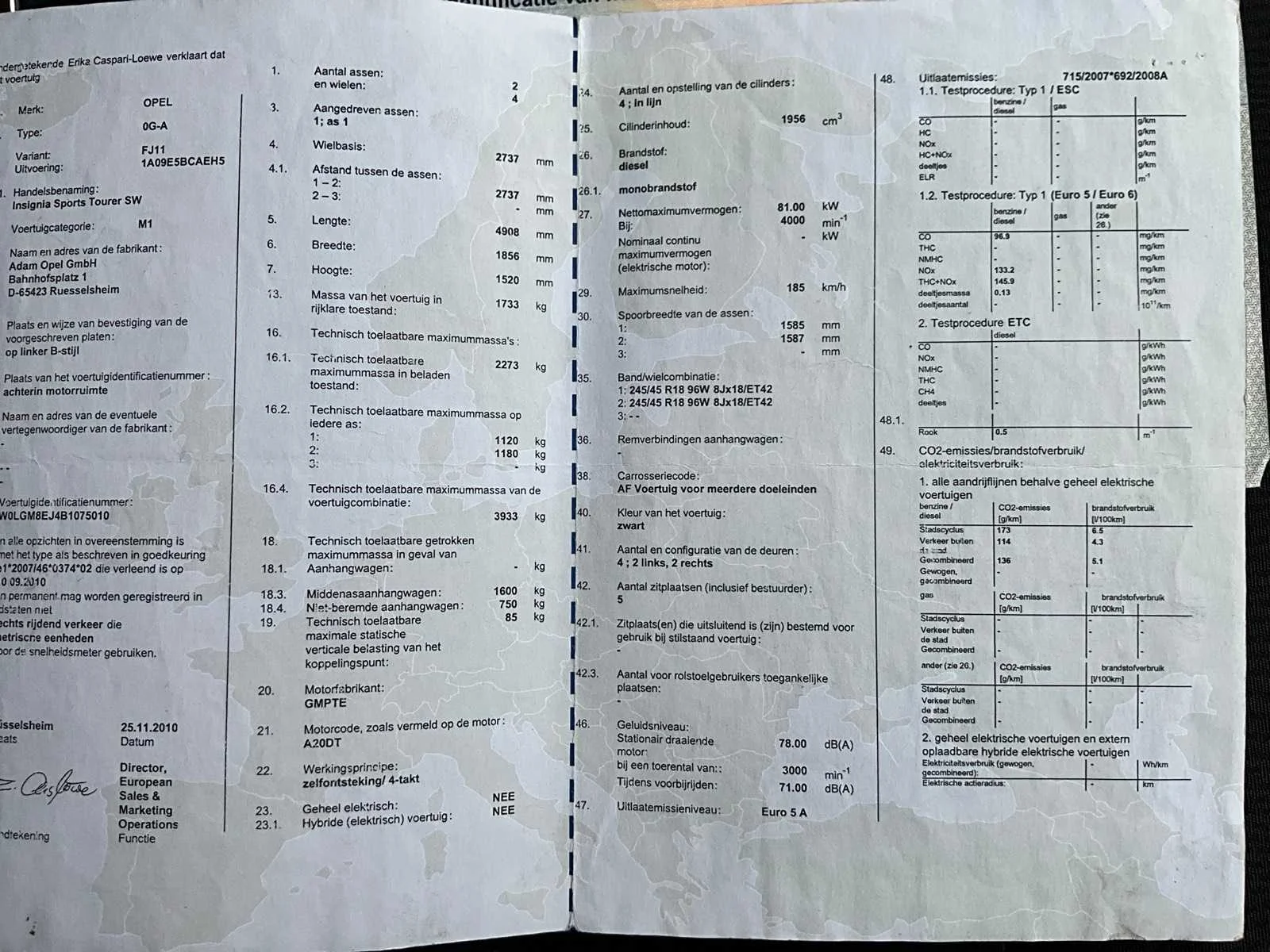 ABS sensor links geeft melding op dashboard - wagen start en rijdt - airco Nee Merk: Opel Model: Insignia Sports Tourer Bouwjaar: 2011 Afgelezen kilometerstand: 20605km Cilinderinhoud: 1956cc Vermogen (kW): 81kW Brandstof: diesel Chassisnummer: W0LGM8EJ4B1075010 Aantal zitplaatsen: 5 Kleur: zwart Emissieklasse: Euro 5 Start en rijdt: ja Keuringsrapport geldig tot: 2/7/2025 Zichtbare schade: nee Vavato voert geen technische keuring uit.: true Airconditioning: true Inschrijvingsbewijs - deel 1 : Aanwezig Inschrijvingsbewijs - deel 2: Aanwezig