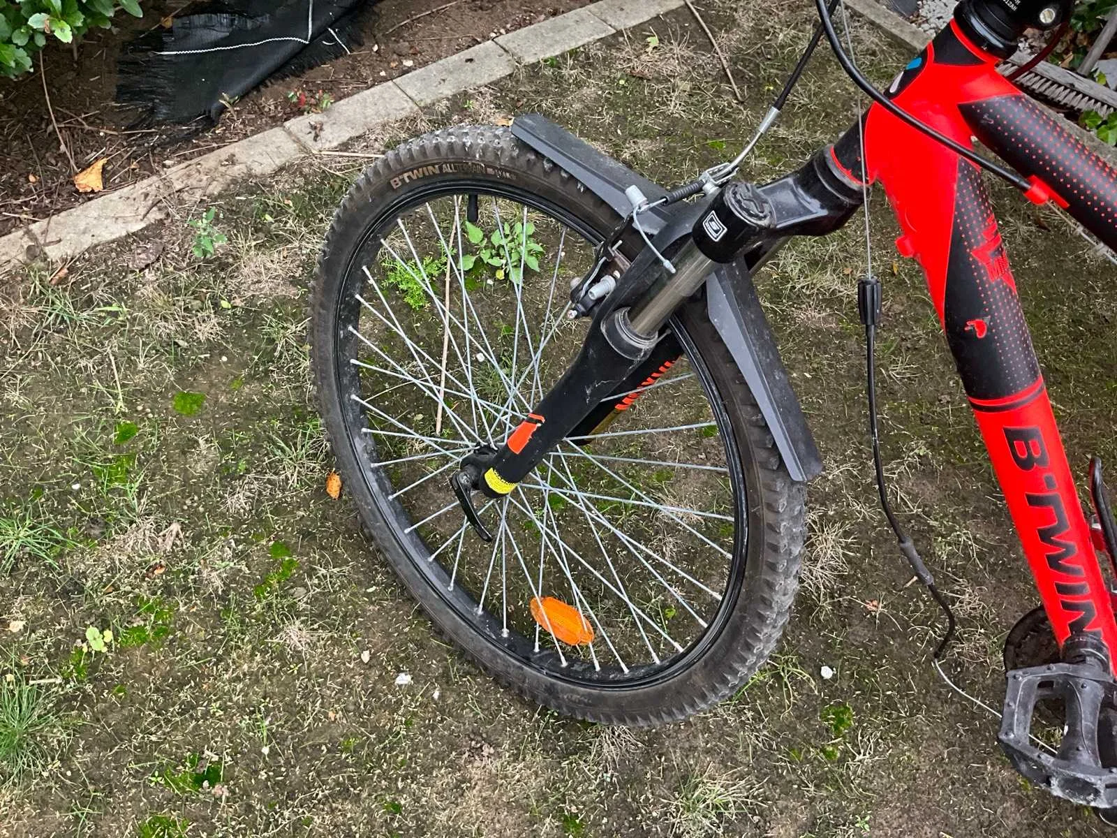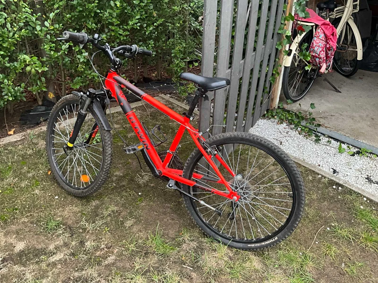 ⚙️ Technische gegevens: Merk: BTWIN Model: Rockrider (26”) Frame: Aluminium Kleur: Rood/Zwart Wielmaat: 26 inch Versnellingen: Shimano (meervoudig) Remmen: V-brakes Vering: Voorvering Zadel: Comfortzadel Pedalen & standaard inbegrepen: Ja Nee