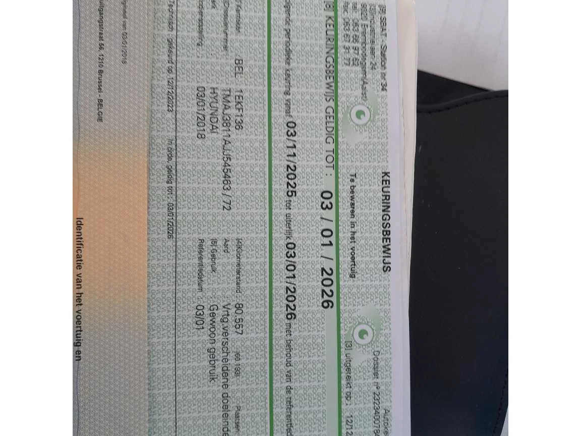 Hyundai Tucson 1.6 GDI Benzine - 03/01/2018 - Perfecte staat - Dealer onderhouden Algemene informatie • Merk en model: Hyundai Tucson • Eerste inschrijving: 03/01/2018 • Brandstof: Benzine (Euro 6) • Motor: 1.6 GDI – 97 kW (132 pk) • Transmissie: Manueel, 6 versnellingen • Kleur: [vul eventueel kleur in] • Kilometerstand: 101000 km • VIN: TMAJ3811AJJ545463 • Eerste eigenaar • Volledig dealer onderhouden, onderhoudsboekje aanwezig • Wagen in perfecte staat, rookvrij en ongevalvrij • Geen btw wagen Uitrusting en opties • Elektrische ruiten voor en achter • Elektrisch verstelbare spiegels • Automatische airco • Zetelverwarming vooraan • Lederen stuurwiel • 6 versnellingen • 17 duims aluminium velgen • Centrale vergrendeling met afstandsbediening • Radio met Bluetooth en USB • Mistlampen vooraan • ISOFIX achteraan Technisch en onderhoud • Dealer onderhouden, alle onderhoudsfacturen beschikbaar • Motor en versnellingsbak werken soepel • Banden en remmen in uitstekende staat • Geen technische gebreken Samenvatting Hyundai Tucson 1.6 benzine in perfecte staat, dealer onderhouden en volledig klaar voor gebruik. Comfortabele en betrouwbare SUV met lage kilometerstand en zuinige Euro 6 motor. Nee Merk: Hyundai Model: Tucson Bouwjaar: 2018 Afgelezen kilometerstand: 10100km Cilinderinhoud: 1600cc Vermogen (kW): 97kW Brandstof: benzine Chassisnummer: TMAJ3811AJJ545463 Datum eerste toelating: 03012018 Vermogen (pk): 132hp Aantal zitplaatsen: 5 Transmissie: Manueel, 6 versnellingen Emissieklasse: euro6 Nationaliteit documenten: BE Vavato voert geen technische keuring uit.: true Inschrijvingsbewijs - deel 1 : aanwezog Inschrijvingsbewijs - deel 2: aanwezig