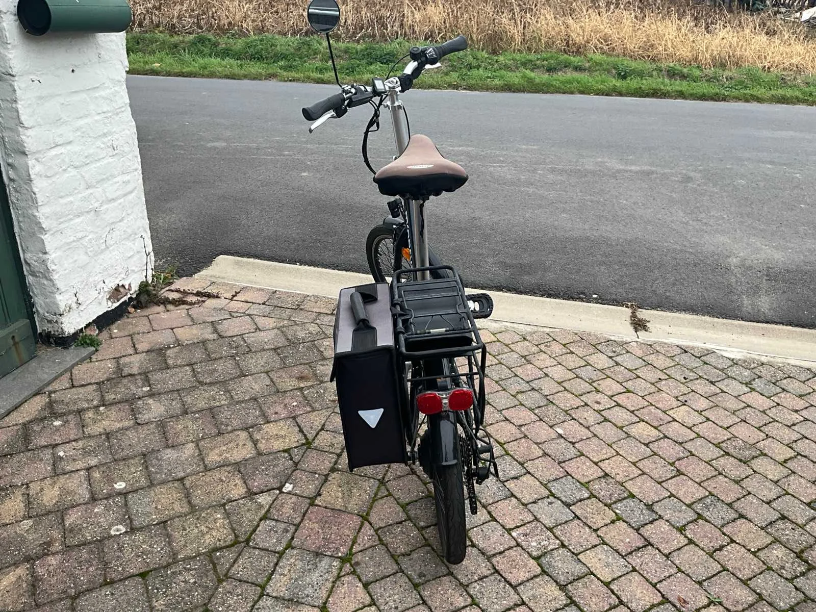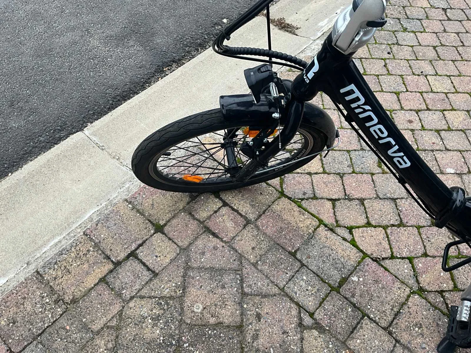 Merk: Minerva Model: Voyager e-Folding Type: Elektrische plooifiets Motor: Elektrische voor- of achternaafmotor (250 W, standaard bij dit model) Batterij: Li-Ion, afneembaar, 36V Versnellingen: Shimano derailleur Remmen: V-brakes Wielen: 20 inch Kleur: Zwart Frame: Aluminium vouwframe Uitrusting: Bagagedrager, spatborden, lichten, zijstandaard Toestand: Goed, getest, klaar voor gebruik Nee Merk: Minerva