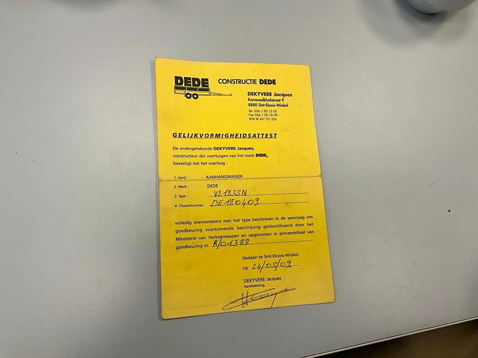 Driezijdige kipaanhangwagen DEDE, Type V21835N - Chassisnr DE180409/85 / Tarra 1260 kg / MTM 3500 kg. Voorzien van loofrekken en reservewiel + handlier. Eerste indienststelling: 10/06/2009. Alle documenten aanwezig No Merk: Dede Type: V21835N Bouwjaar: 2009 Chassisnummer: DE180409/85 Aantal assen: 2 Laadbak afmeting l: 400cm Laadbak afmeting b: 190cm Ledig gewicht: 1260kg Laadvermogen: 3500kg Datum eerste toelating: 10/06/2009 Kentekenpapieren compleet?: true Nationaliteit documenten: BE