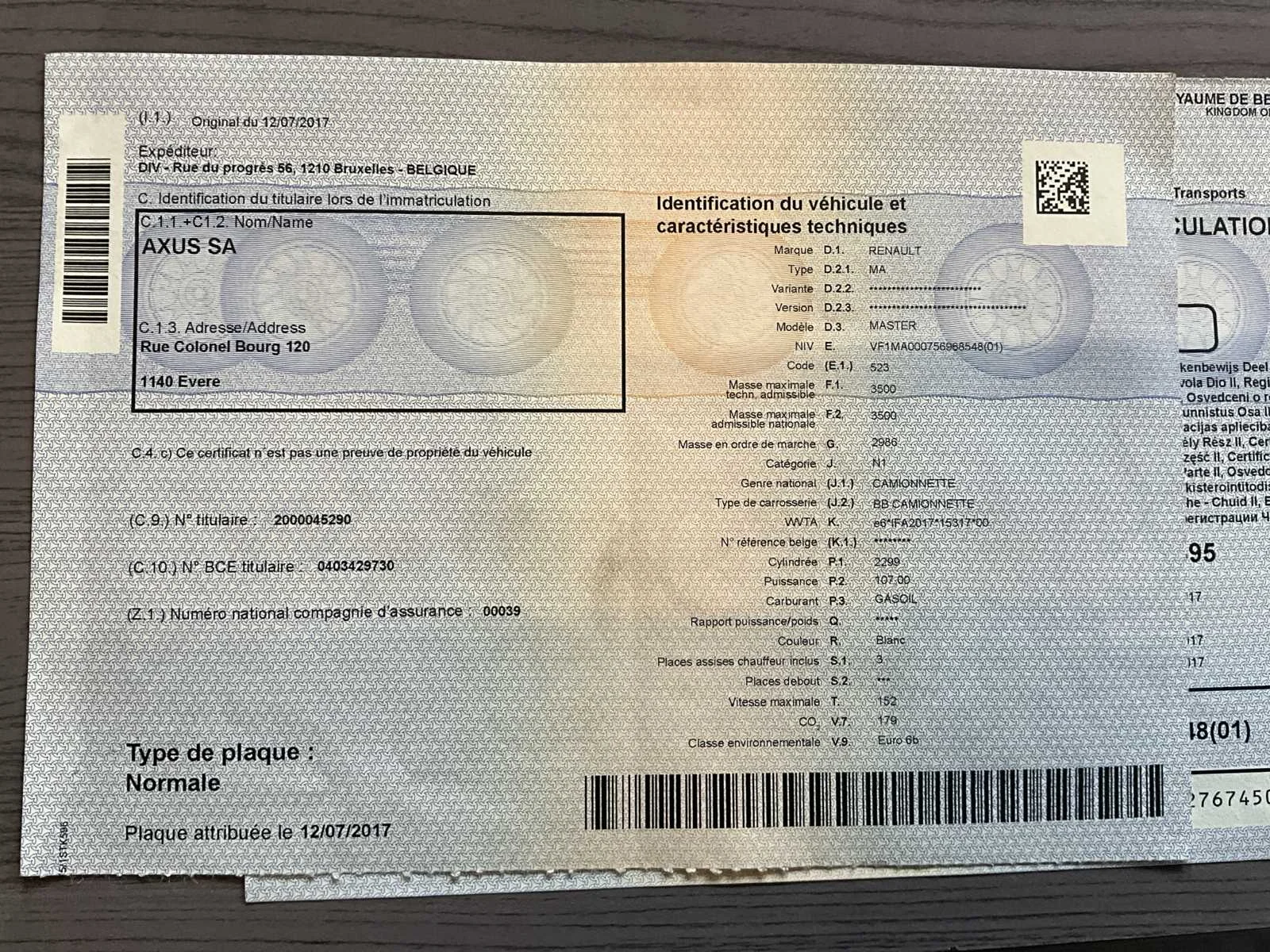 Nee Merk: Renault Type: Master Bouwjaar: 2017 Chassisnummer: VF1MA000756968548 Afgelezen kilometerstand: 105201km Cilinderinhoud: 2299cc Vermogen (kW): 107kW Brandstof: diesel Datum eerste toelating: 12/07/2017 Aantal zitplaatsen: 3 Aantal deuren: 5 Aantal sleutels: 1 Aantal cilinders: 4 Boorddocumenten aanwezig?: true