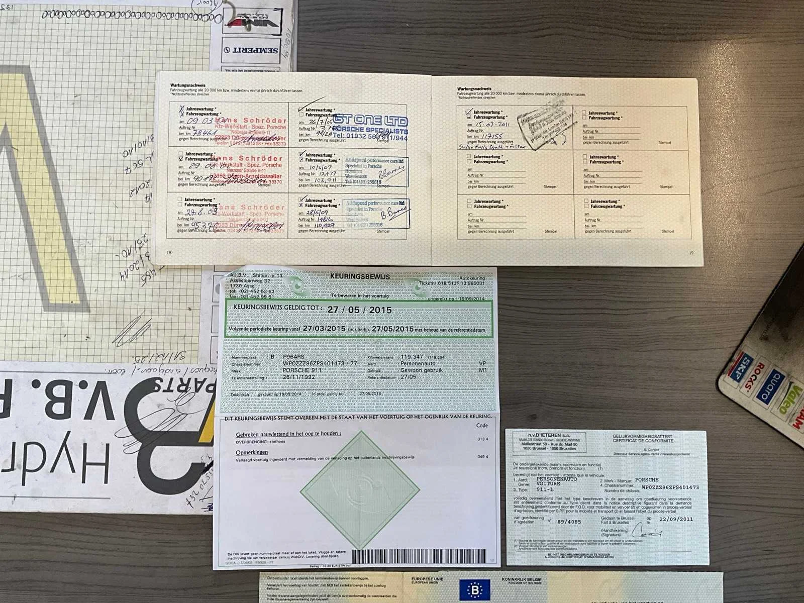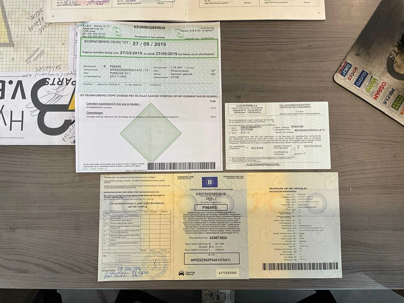 Magnesiumvelgen Nee Merk: Porsche Model: 911-L Type: 964 Bouwjaar: 1992 Afgelezen kilometerstand: 120445km Vermogen (kW): 184kW Brandstof: benzine Chassisnummer: WP0ZZZ96ZPS401473 Datum eerste toelating: 26/11/1992 Transmissie: Automaat Aantal deuren: 2 Nationaliteit documenten: BE Gelijkvormigheidsattest aanwezig: true Start en rijdt: JA Zichtbare schade: Perfecte staat Inschrijvingsbewijs - deel 1 : Aanwezig Inschrijvingsbewijs - deel 2: Aanwezig