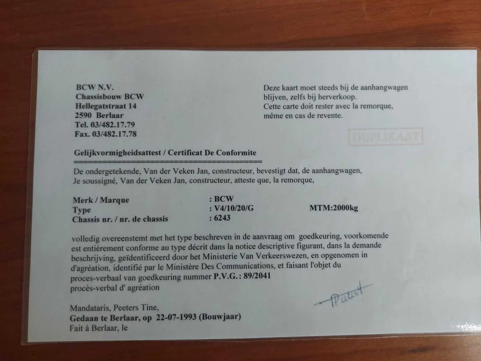 1993 bcw v4/10/20/g kip aanhangwagen
