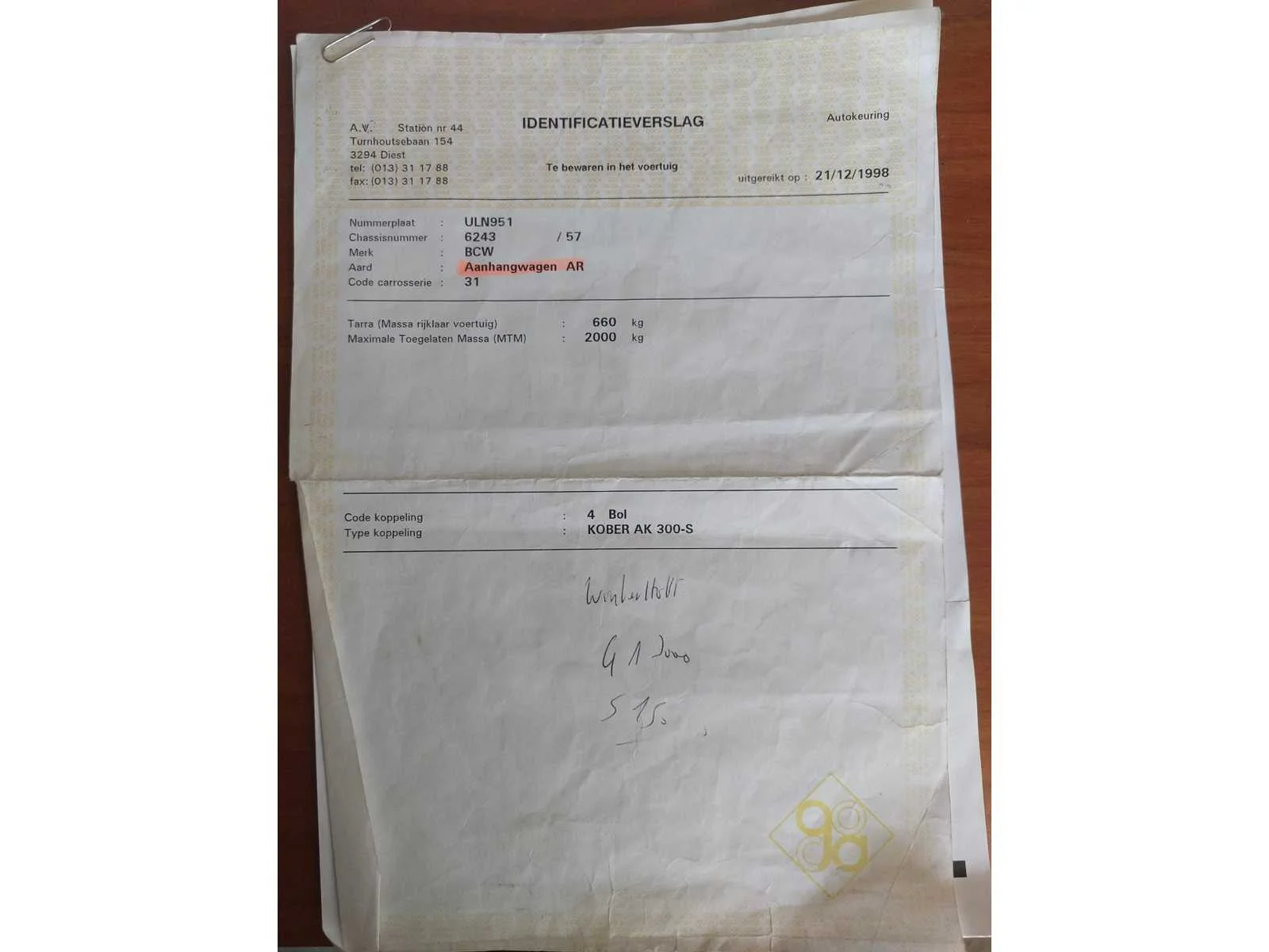 Exclusief batterij! Voor op te maken of voor onderdelen Nee Merk: BCW Type: V4/10/20/G Bouwjaar: 1993 Chassisnummer: 6243 Aantal assen: 2 Ledig gewicht: 660kg Laadvermogen: 2000kg Datum eerste toelating: 14/12/1993 Nationaliteit documenten: Belgisch