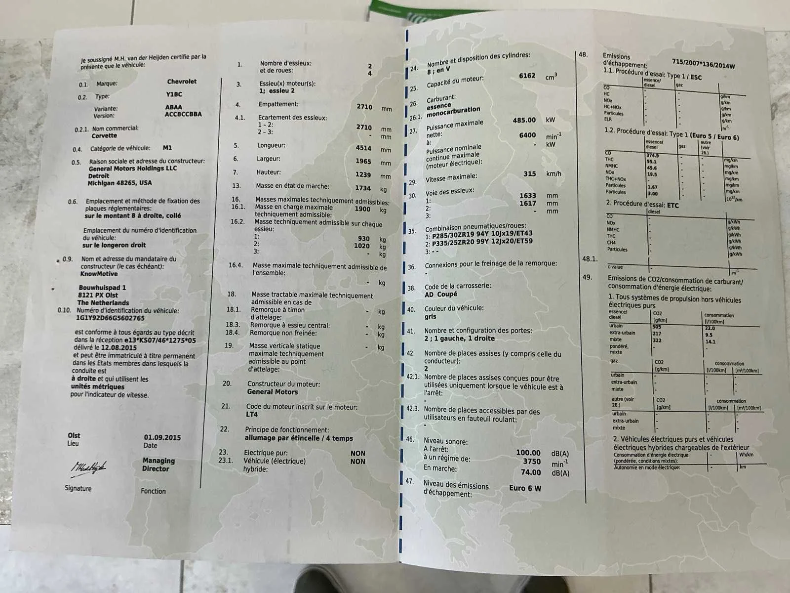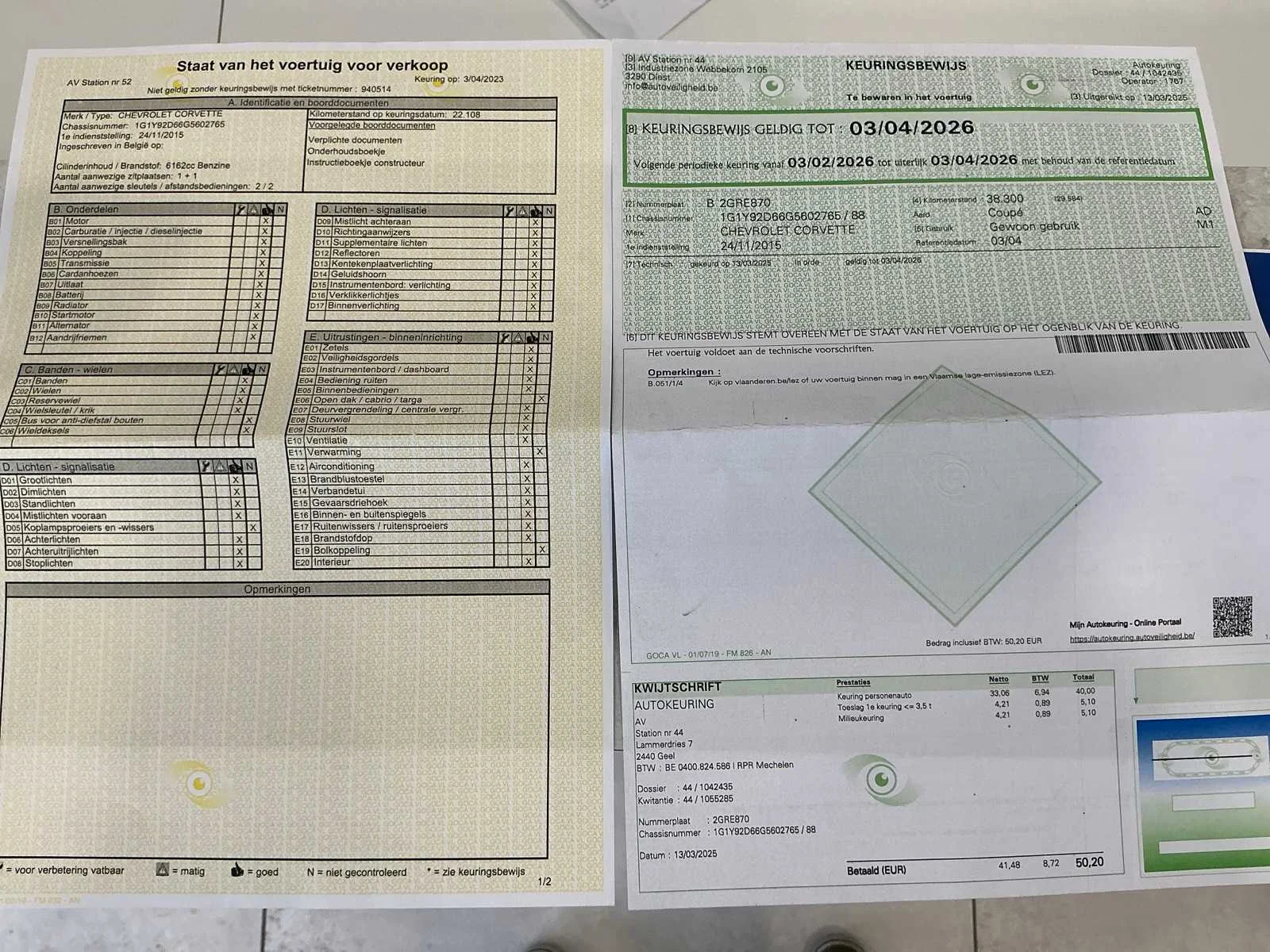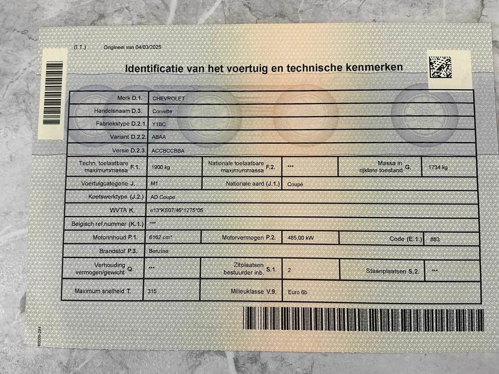 Deze exclusieve sportwagen, 1ste ingebruikname:24/11/2015, combineert een iconisch design met indrukwekkende prestaties en luxueuze afwerking. Onder de motorkap bevindt zich een krachtig 6.2L V8 met supercharger, goed voor ongeveer 730 pk, gekoppeld aan een soepele automatische versnellingsbak die zorgt voor een comfortabele en sportieve rijervaring. Daarbij komt het kenmerkende, indrukwekkende geluid dat deze Corvette zo geliefd maakt. Het lichtbruine Saddle Tan lederen interieur met verwarmde en gekoelde zetels zorgt voor optimaal comfort, terwijl de elektrisch bediende zetels en het multifunctionele stuur extra gemak bieden. De wagen is uitgerust met de geliefde uitbouwkit en is volledig uitgerust met een uitgebreid pakket opties, waaronder: -Verwarmde en gekoelde elektrisch verstelbare zetels -Multifunctioneel stuurwiel -Automatische airconditioning -Cruise control -Led koplampen -Regensensor -Premium audio systeem -Headup display -Licht en regensensor -Navigatiesysteem -Parkeersensoren voor en achter -Achteruitrijcamera -Bose sound systeem -Keyless entry & start -Bluetooth-connectiviteit -LED-verlichting binnen en buiten -Carbon keramische remmen -Uitbouwkit (aerodynamische verbeteringen) -Enz... De Chevrolet C7 Z06 staat bekend om zijn krachtige prestaties en exclusiviteit, en dit exemplaar is in topconditie. zwarte lichtmetalen velgen in 19-inch vooraan en 20-inch achteraan. Bent u op zoek naar een sportwagen die luxe, comfort en kracht perfect combineert? Dan is deze Corvette C7 Z06 Targa de ideale keuze! Nee Merk: Chevrolet Model: Corvette C7 Z06 3LZ 6.2 V8 Aut. Supercharged Bouwjaar: 2015 Afgelezen kilometerstand: 44166km Cilinderinhoud: 6162cc Vermogen (kW): 485kW Brandstof: benzine Chassisnummer: 1G1Y92D66G5602765 Datum eerste toelating: 24/11/2015 Emissieklasse: Euro6b Nationaliteit documenten: Belgisch Gelijkvormigheidsattest aanwezig: true Start en rijdt: Ja Keuringsrapport geldig tot: 3/04/2026 Vavato voert geen technische keuring uit.: true Inschrijvingsbewijs - deel 1 : Aanwezig Inschrijvingsbewijs - deel 2: Aanwezig
