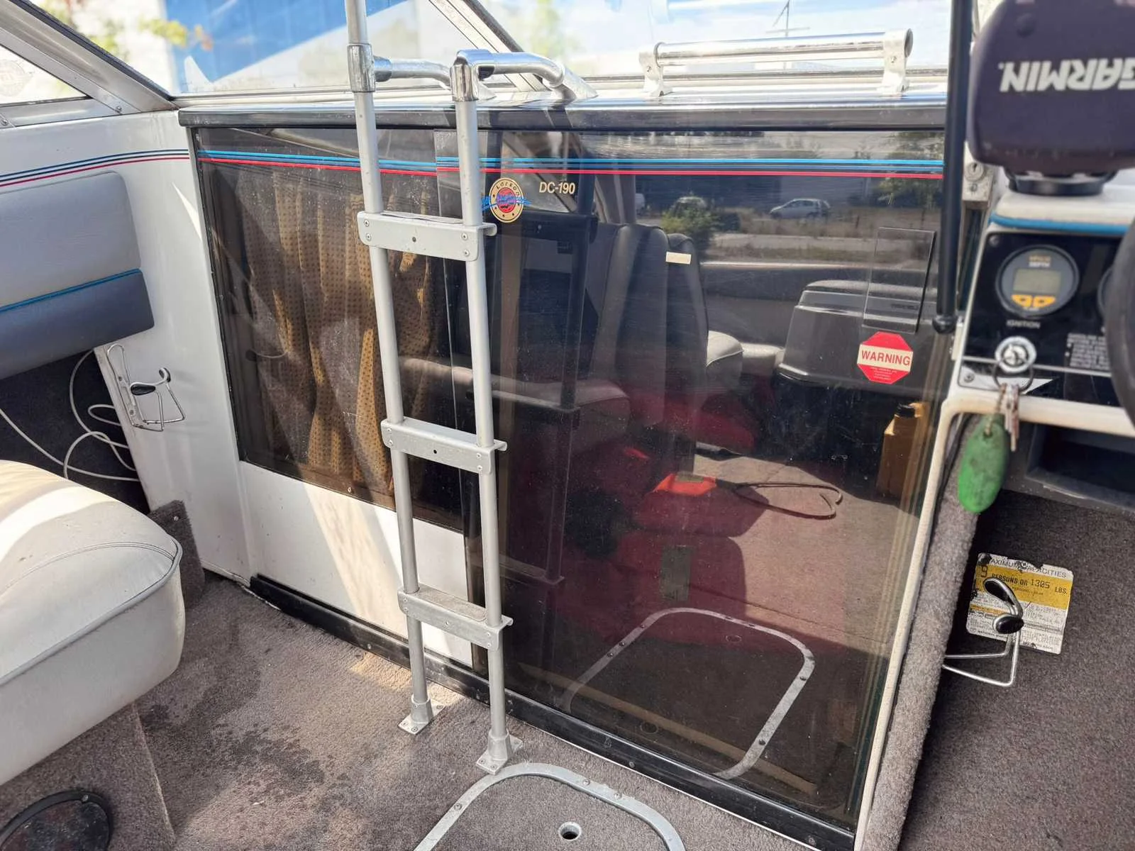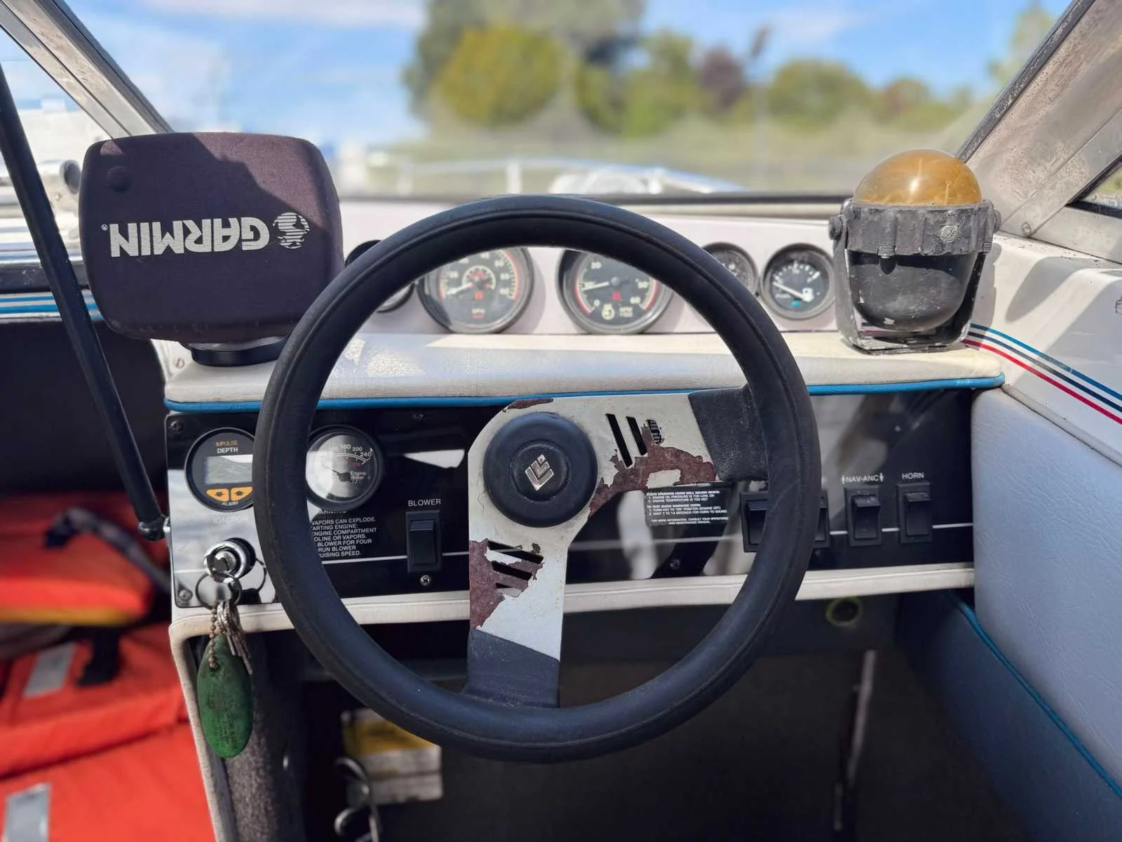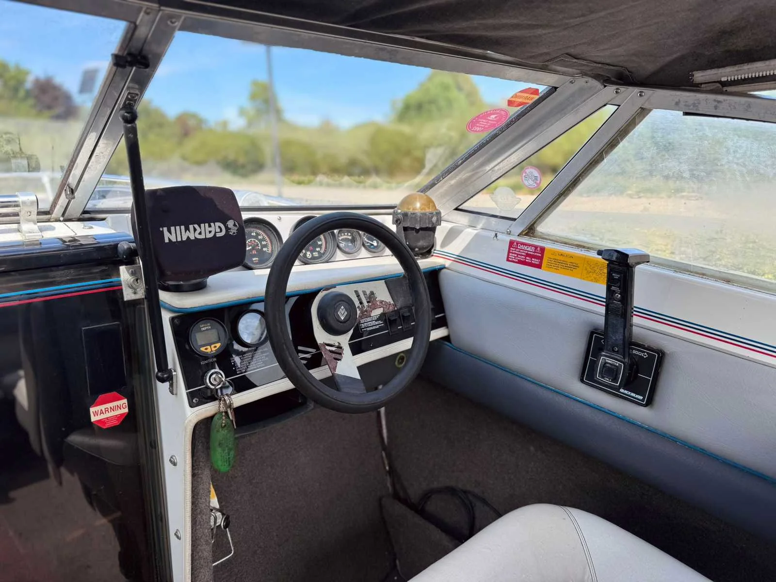 Nee Merk: Larson Type: 19 Cuddy “Escapade” Werf: Larson Boats (USA) Lengte: 6.5m Breedte: 2.5m Diepgang: 0.5m Bouwjaar: 1989 Rompmateriaal: Polyester (GRP) Aantal hutten: 1 Aantal slaapplaatsen: 2 Aantal motoren: 1 Merk motor: MerCruiser Vermogen (pk): 175hp Brandstof: Benzine