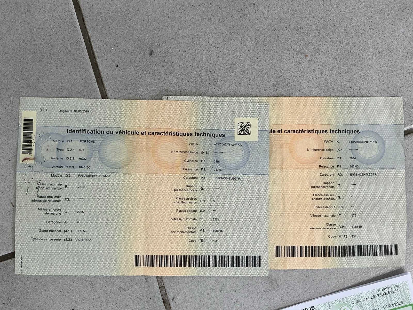 Nee Merk: Porsche Model: Panamera 4 E-Hybrid Type: Sport Turismo Bouwjaar: 2018 Afgelezen kilometerstand: 64105km Cilinderinhoud: 2894cc Vermogen (kW): 243kW Brandstof: hybride (elektrisch+benzine) Chassisnummer: WP0ZZZ97ZJL188398 Datum eerste toelating: 02/01/2018 Vermogen (pk): 330hp Aantal zitplaatsen: 5 Kleur: Zilver Metallic Transmissie: Automaat Emissieklasse: Euro 6B Aantal deuren: 5 Aantal sleutels: 2 Velgmaat: 21” Nationaliteit documenten: Belgisch Onderhoudshistorie: YES Gelijkvormigheidsattest aanwezig: true Start en rijdt: YES Keuringsrapport geldig tot: 01/07/2026 Zichtbare schade: Linkervoordeur (zie foto) oplaadkabel : YES Inschrijvingsbewijs - deel 1 : Aanwezig Inschrijvingsbewijs - deel 2: Aanwezig