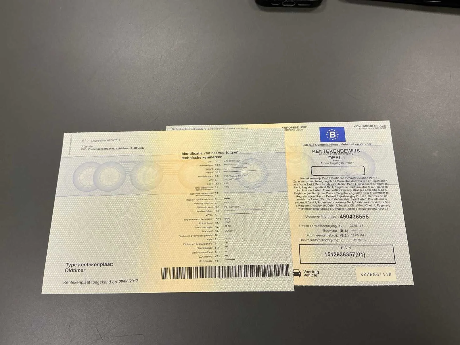 Nee Merk: Volkswagen Type: 1302S Cabrio Bouwjaar: 1971 Chassisnummer: 1512936357 Afgelezen kilometerstand: 45822 Model: Kever Brandstof: Benzine Datum eerste toelating: 22/06/1971 Nationaliteit documenten: Belgisch Transmissie: Handgeschakeld Vermogen (kW): 37kW Aantal sleutels: 1 Startinformatie: Start en rijdt Cilinderinhoud: 1600 Inschrijvingsbewijs - deel 1 : Aanwezig Inschrijvingsbewijs - deel 2: Aanwezig