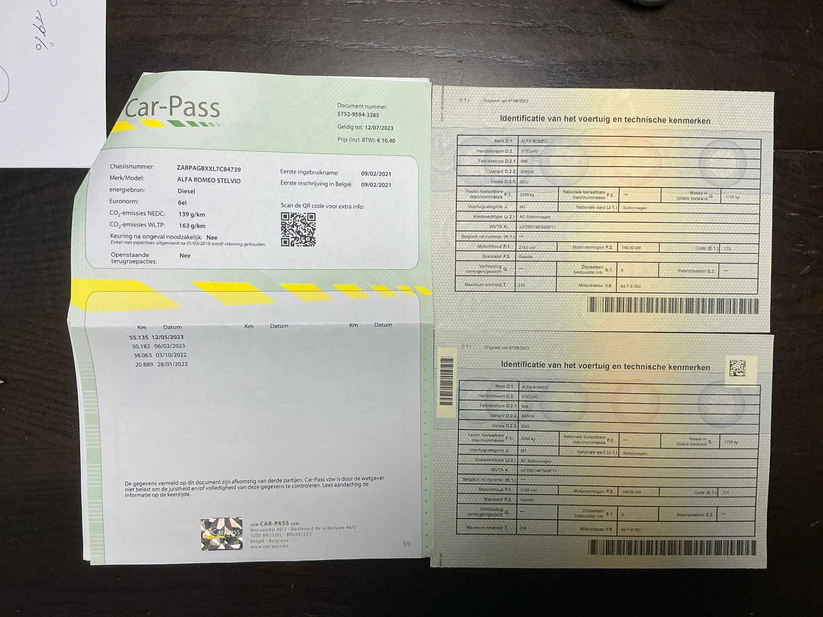 Elegante en sportieve SUV in zeldzame Grigio Spoleto metallic lak. Deze Alfa Romeo Stelvio Super uit 2021 beschikt over een krachtige 190 pk motor, automatische transmissie en Italiaanse flair in een premium afwerking met zo goed als alle opties. Voorzien van moderne technologie, hoogwaardige materialen en verfijnde rijeigenschappen – een ideale combinatie van prestaties en comfort. De unieke kleur en lage kilometerstand maken dit exemplaar extra aantrekkelijk voor liefhebbers van stijl en karakter. No Merk: Alfa Romeo Model: Stelvio Type: Super Bouwjaar: 2021 Afgelezen kilometerstand: 98914km Cilinderinhoud: 2143cc Vermogen (kW): 140kW Brandstof: diesel Chassisnummer: ZARPAGBXXL7C84739 Laadvermogen: 595kg Datum eerste toelating: 09/02/2021 Vermogen (pk): 190hp Aandrijving: AWD Aantal zitplaatsen: 5 Kleur: Grigio Spoleto metallic Transmissie: Automaat Stuurwiel: Multifunctioneel Emissieklasse: 6D-T-E-ISC Aantal deuren: 5 Aantal sleutels: 2 Ledig gewicht: 1735kg Velgmaat: 20 Aantal cilinders: 4 Carrosserie: Stationwagen Nationaliteit documenten: Belgsich CO2-uitstoot NEDC: 139 Onderhoudshistorie: Dealer onderhouden Gelijkvormigheidsattest aanwezig: true Carpass: true Start en rijdt: Ja Keuringsrapport geldig tot: 09/02/2027 Technische fiche: true Andere boorddocumenten: Gelijkvormigheidsattest startinformatie : Start Self drive export possible : true Vavato voert geen technische keuring uit.: true Airconditioning: true Navigatie: true Xenon verlichting: true LED-koplampen: true Leder bekleed: true Vierwielaandrijving 4x4: true Inschrijvingsbewijs - deel 1 : Aanwezig Inschrijvingsbewijs - deel 2: Aanwezig