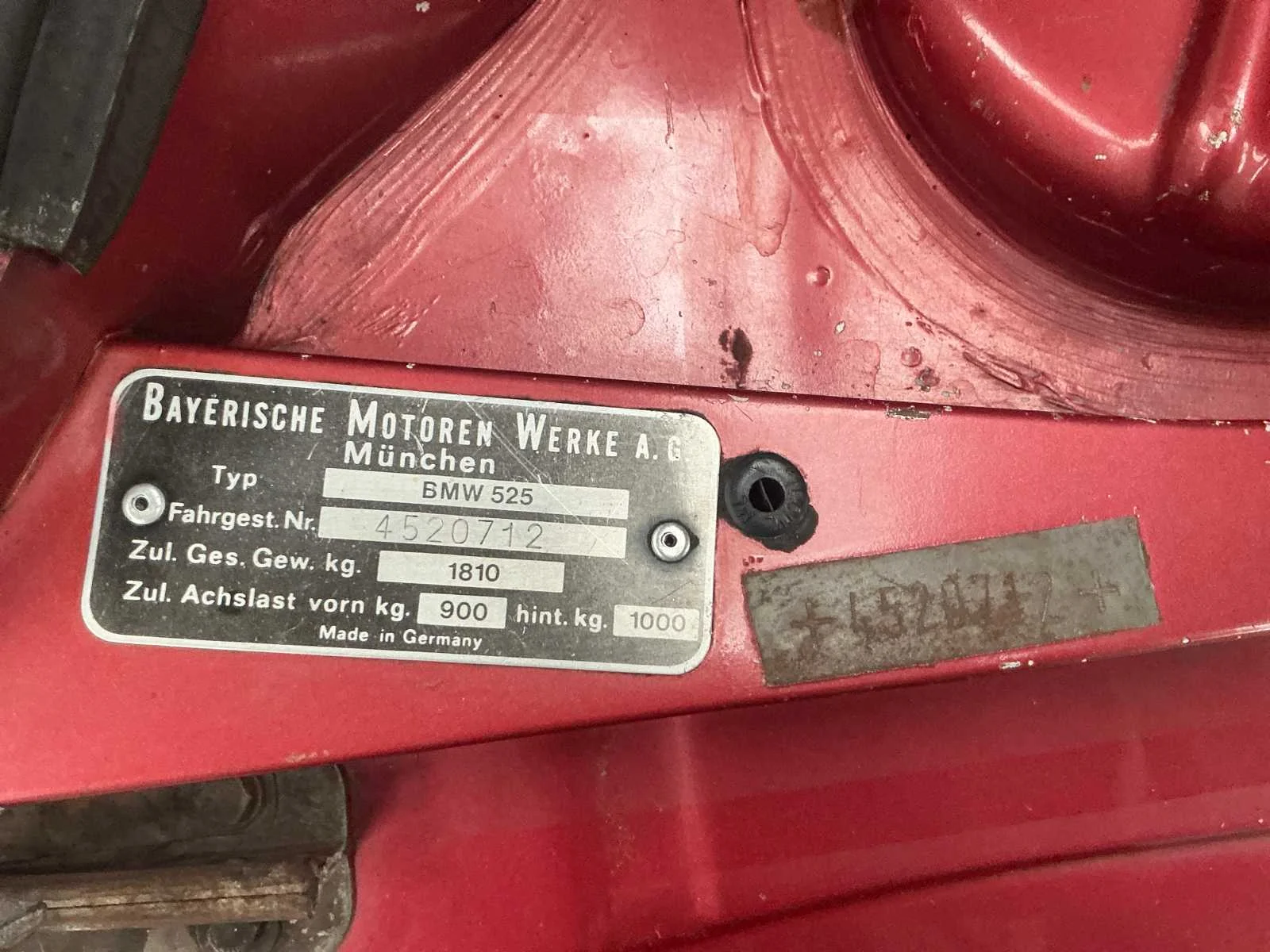 Staat al 10 jaar stil. Start en rijdt. Nee Merk: BMW Type: 525 Bouwjaar: 1977 Chassisnummer: 4520712 Afgelezen kilometerstand: 147753 Model: E12 Brandstof: benzine Gasinstallatie: true Datum eerste toelating (NL): 27/04/1977 Boorddocumenten aanwezig?: true Nationaliteit documenten: Nederlands Aandrijving: RWD Transmissie: Automatisch Vermogen (pk): 150 Vermogen (kW): 110kW Aantal deuren: 5 Aantal zitplaatsen: 5 Kleur: Rood Cilinderinhoud: 2494 Aantal cilinders: 6